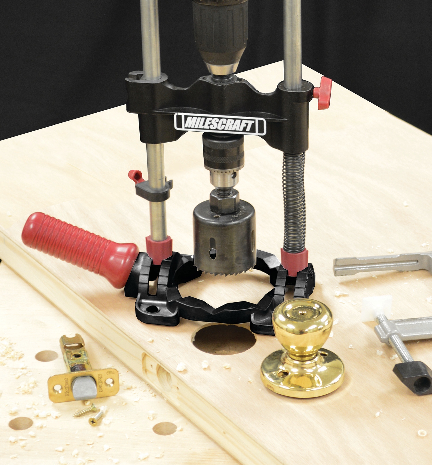 DrillMate від Milescraft це міцна металева портативна підставка для дрилі.
