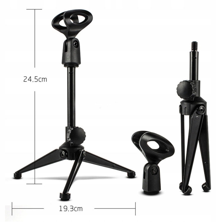 Стійка для настільного мікрофона виготовлена з високоякісних матеріалів. Його міцна і міцна конструкція дозволяє надійно і стійко тримати мікрофон.