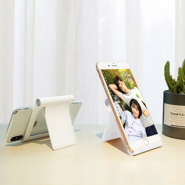 Виріб характеризується сучасним дизайном і високою якістю виконання. Тримач служить підставкою для телефону або планшета, що стане в нагоді в подорожах. Вся конструкція надзвичайно мала та зручна, тому її можна взяти з собою. Протиковзкі килимки запобігають пересуванню підставки.
