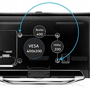 Подивіться на задню частину монітора та знайдіть чотири різьбові отвори. Виміряйте горизонтальну та вертикальну відстань між отворами для гвинтів (від центру до центру). На фото зображено VESA розміром 400х200 мм. Виміряна відстань – це розмір VESA, наприклад B. 100 x 100 мм, 200 x 100 мм, 200 x 300 мм