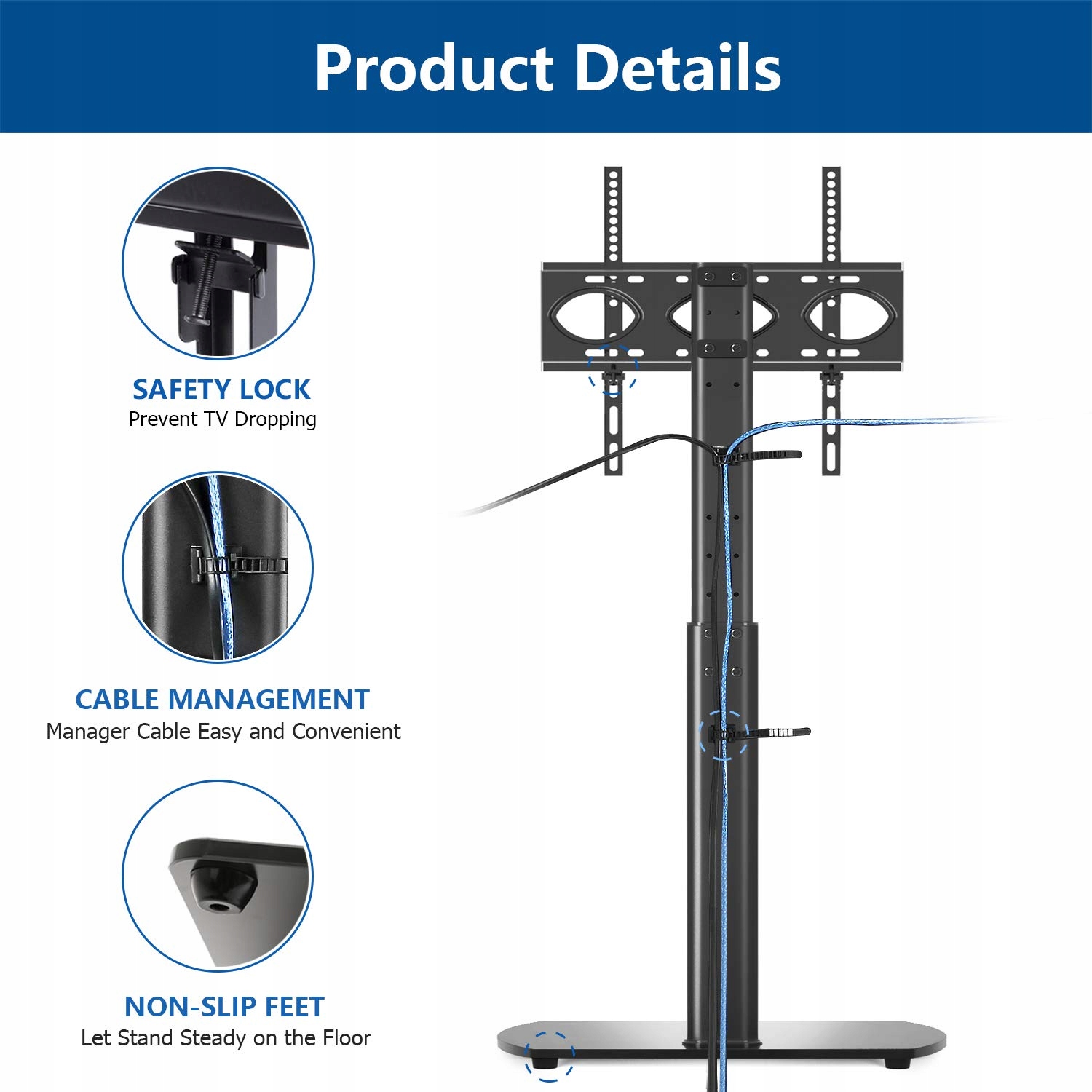 💡 БЕЗПЕКА - Виготовлена з міцної сталі та загартованого скла. Окрема тумба для телевізора добре сконструйована. Чотири нековзкі гумові ніжки забезпечують стійкість і захищають підлогу від подряпин. Запобіжний замок у кронштейнах запобігає ковзанню телевізора набік або падінню.