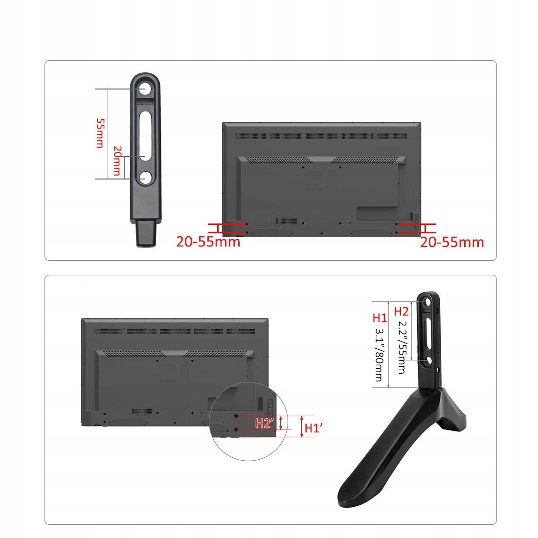 Тримач можна використовувати для будь-якої марки телевізора з відстанню між монтажними отворами 20-55 мм і вагою 45 кг.