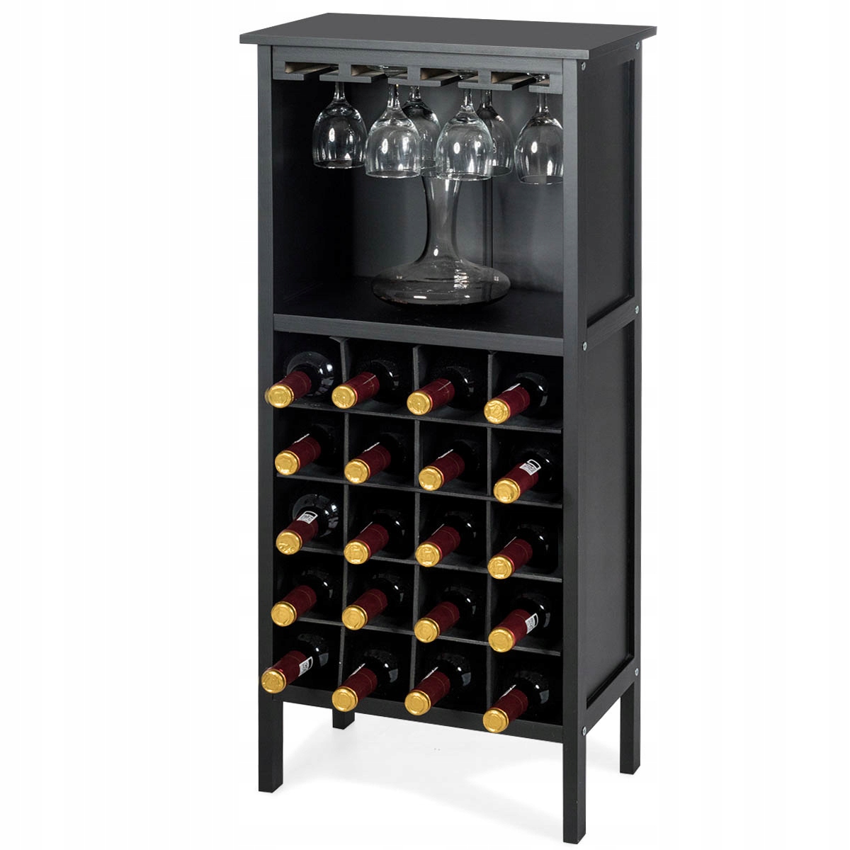 Багато місця для зберігання - нижня частина винної стійки вміщує 20 пляшок вина, верхня шафа має 4 келихи для вина тримачі та додаткове місце для зберігання. Він може вмістити до 20 пляшок вина.