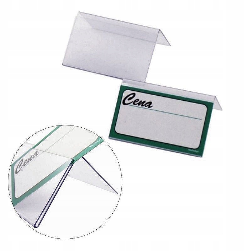Кишеня захищає етикетки та цінники від забруднення, а ціни — від розмазування. Підставка, ніжка зігнута під кутом 90 градусів, дозволяє повісити раму на край полиці або поставити підставку. Стенди дозволяють естетично та наочно описувати товари з цінами.