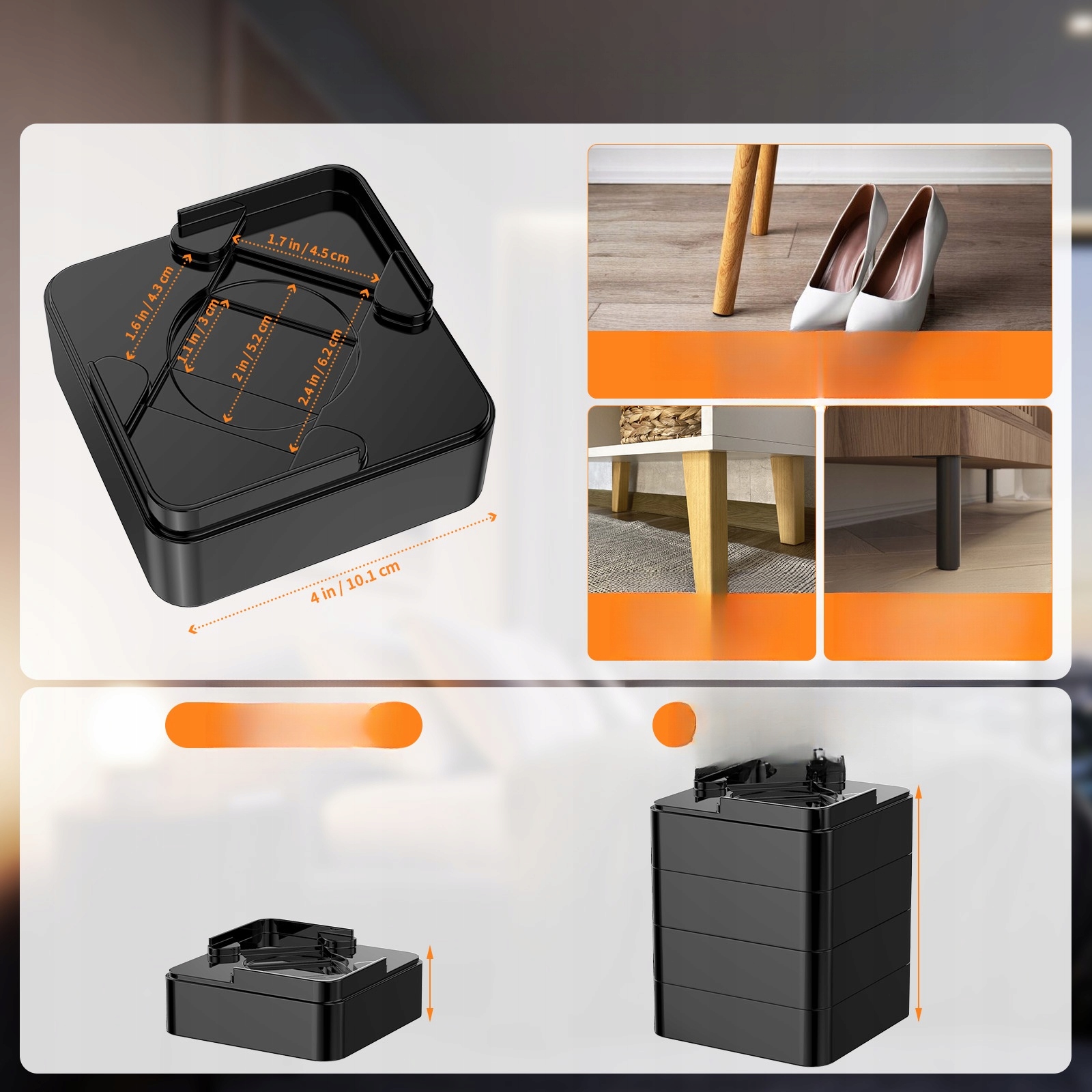 ✅ Конструкція, що складається. Ці меблеві підйомники забезпечують ідеальний підйом із можливістю штабелювання, вони можуть піднімати ваші меблі на різну висоту, а також їх можна складати, щоб збільшити висоту.