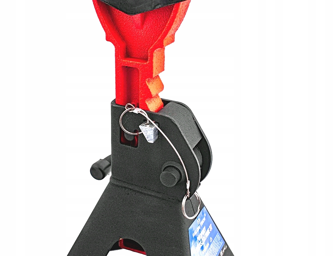 Спеціальний додатковий замок у вигляді штиря (цапфа) захищає храповий механізм від мимовільного опускання опорної колони. Штифт оснащений сталевим тросом, прикріпленим до корпусу естакади, який захищає його від втрати.
