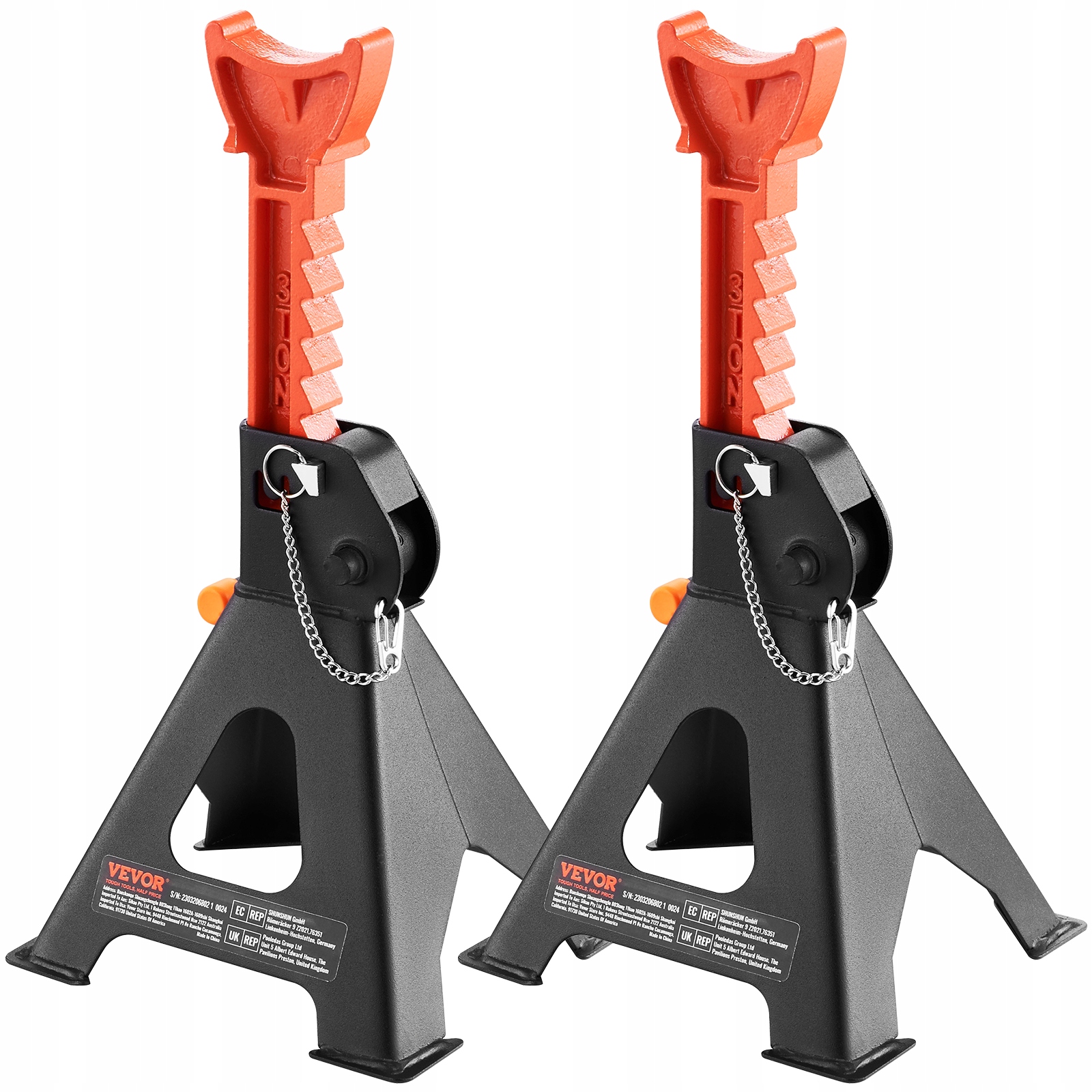 Важка обробка навантаження: Ви маєте справу з важкими робочими завданнями? Підставки для підйому Vevor мають потужність 3-тонної/6600 фунтів і можуть підняти позашляховики, пікап, автомобілі, UTV та ATV. Вони відповідають стандартам CE, забезпечуючи вашу безпеку під час використання. Відчувайте себе впевнено, коли ремонтуйте свій автомобіль!