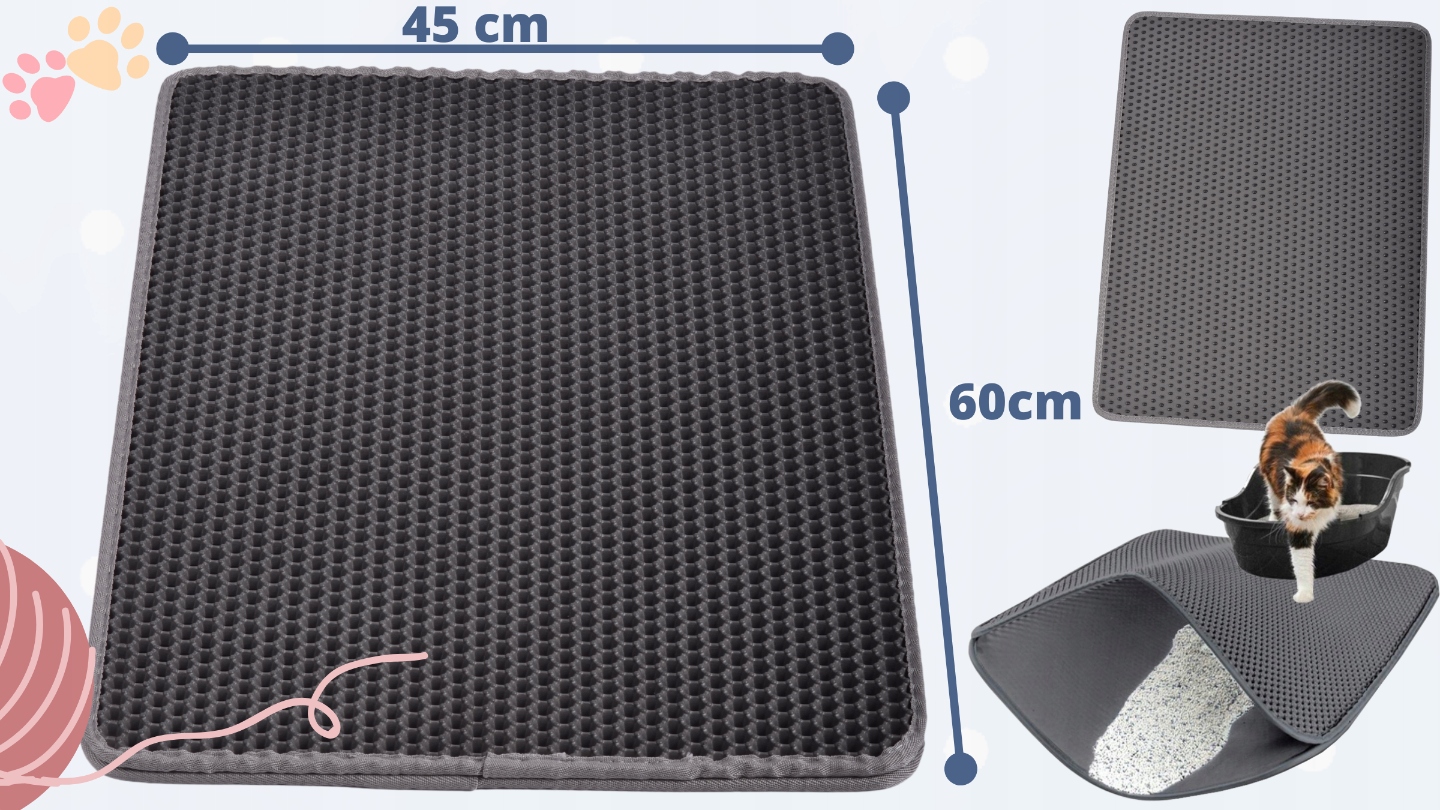 - ✅Протиковзке дно килимка -нижній шар зроблений з протиковзкого матеріалу, що утримує килимок на місці. Кошеня відчуває себе в безпеці під час використання лотка