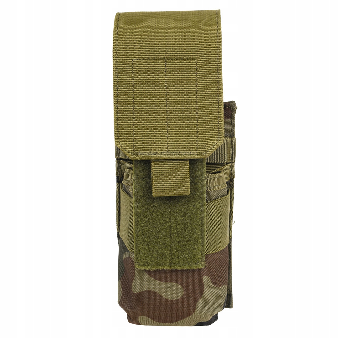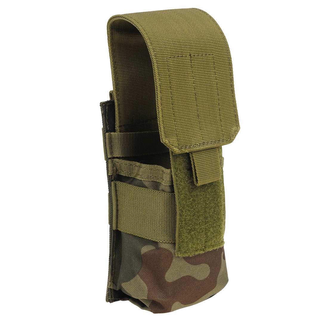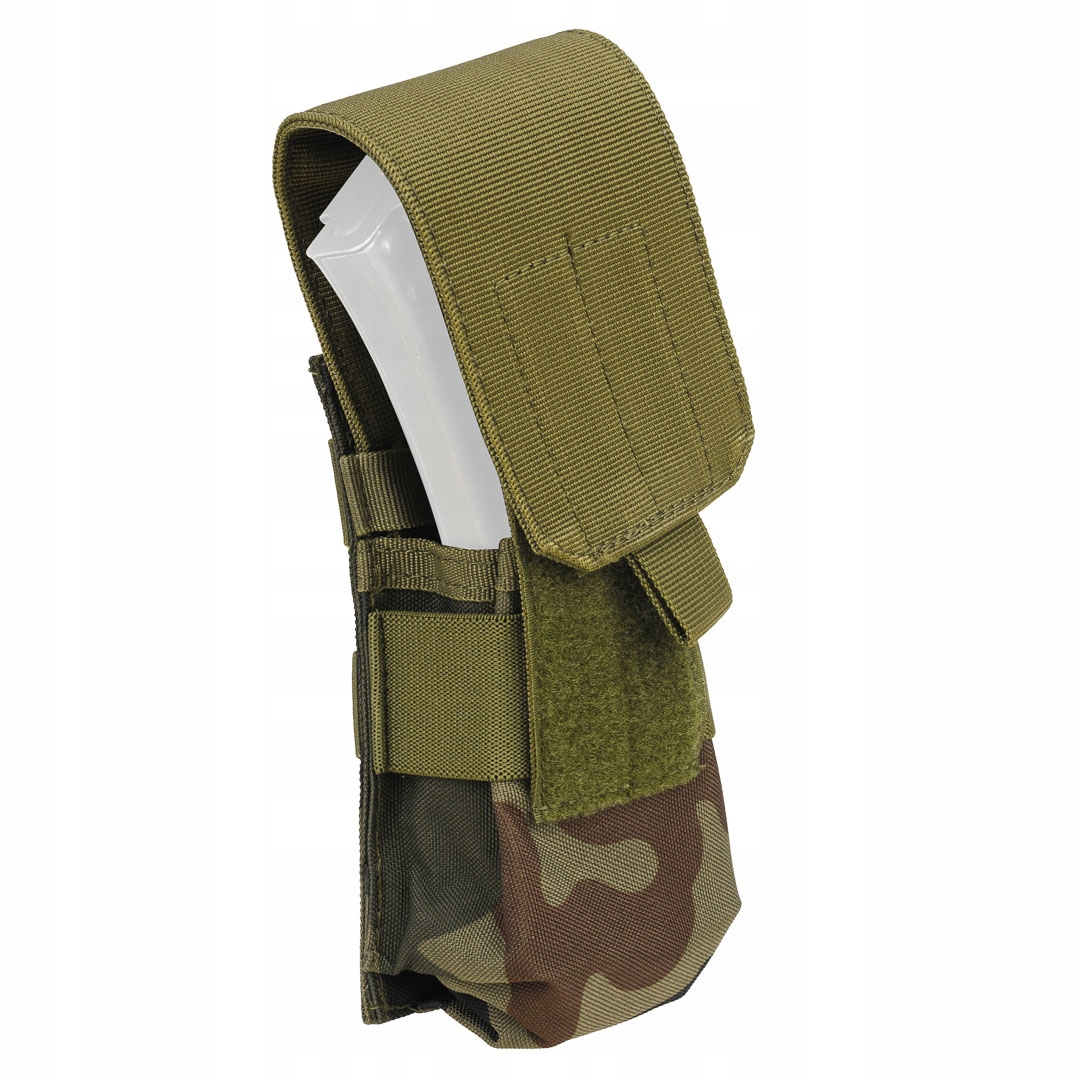 Універсальна застібка для підсумка – знімний клапан на липучці дозволяє регулювати розмір підсумка для журналу. Клапан можна нахиляти та регулювати його кут відповідно до форми лукових магазинів АК. Стрічкова петля забезпечує зручне захоплення та дозволяє швидко відкрити мішечок навіть у рукавичках. Гнучка гума, що оточує його, запобігає випаданню магазинів, коли кришка розкріплена (положення готовності) або повністю від’єднана (CQB). Гума також робить підсумок тихішим, а магазини не стикаються один з одним. У нижній частині мішечка є дренажна заклепка для відводу води та бруду з його внутрішньої частини у разі затоплення. Злив дозволяє мити пакет під проточною водою.