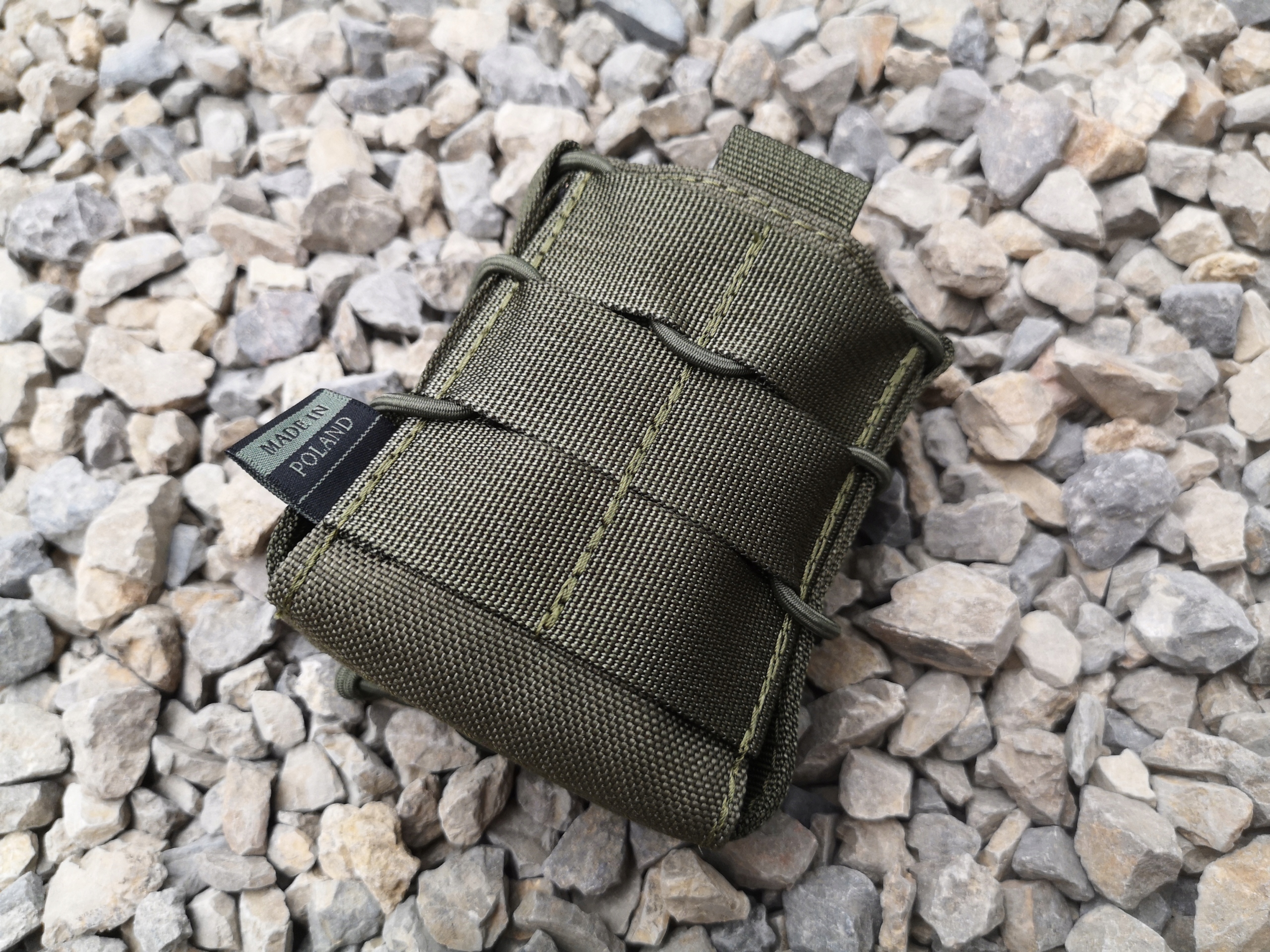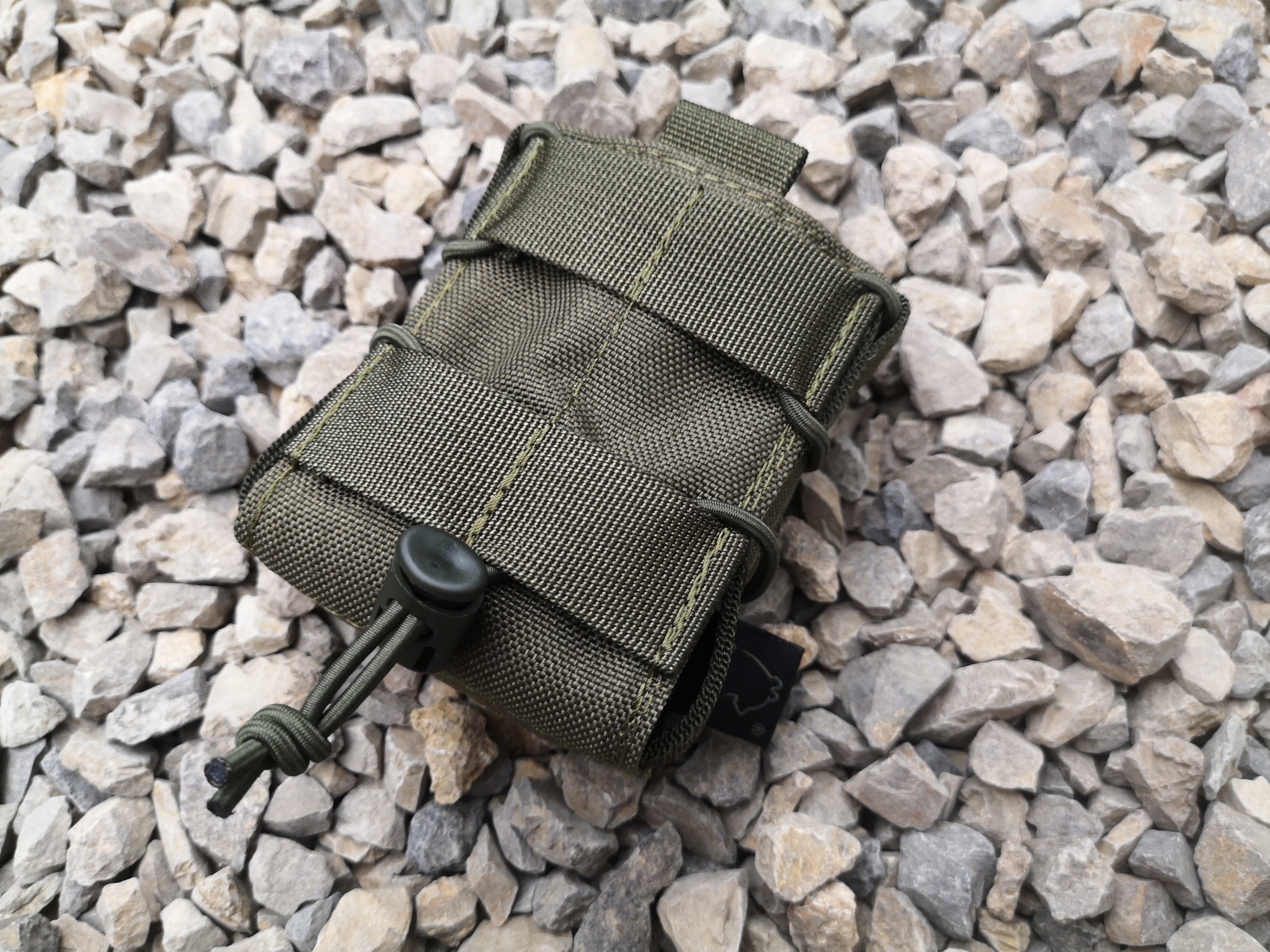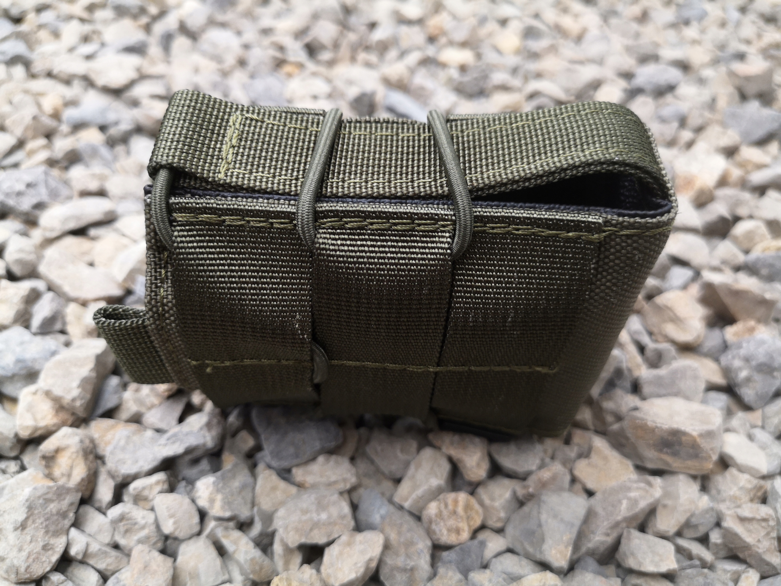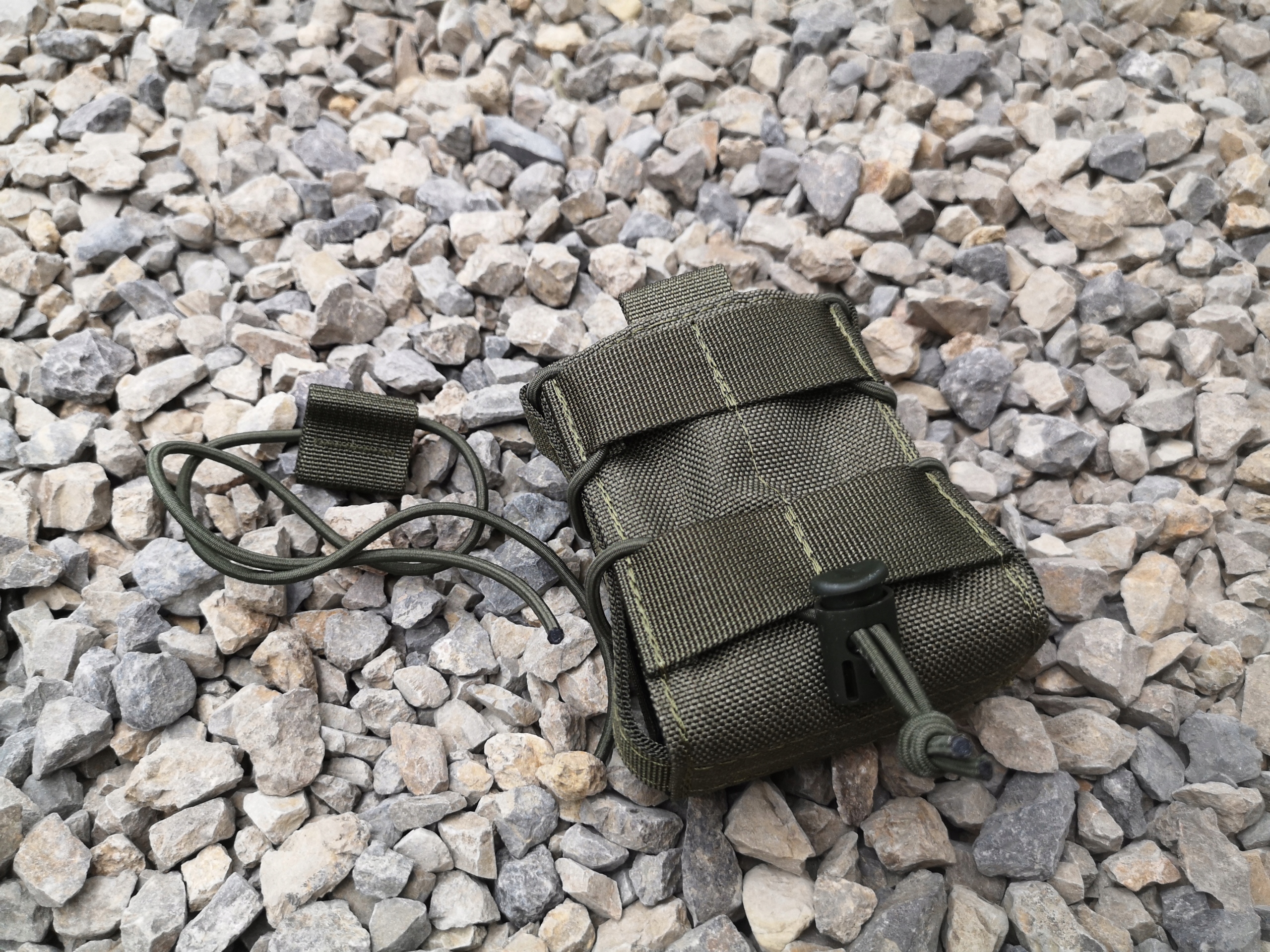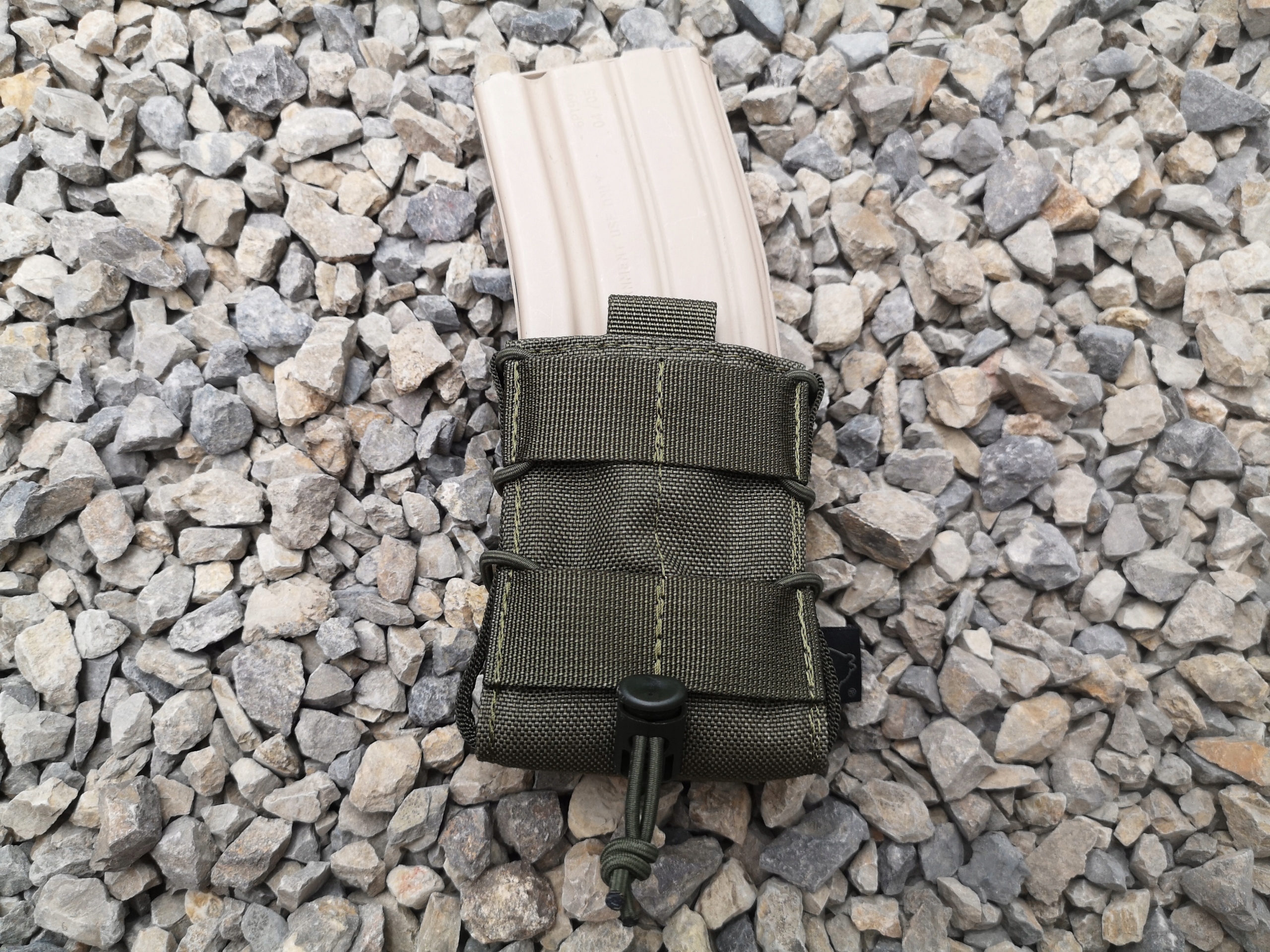 Гонтова сумка, відкрита, призначена для швидкого вилучення магазину. Всередині є гумовий матеріал, який добре утримує вміст. Крім того, силу затиску можна регулювати за допомогою ударного шнура навколо сумки. Довжина була скоригована, щоб відповідати магазинам для зброї M4/M16, але її також можна успішно використовувати з AK та подібними магазинами. Однак слід враховувати висоту підсумка, яка призначена для швидкого виймання за рахунок безпечного перенесення.