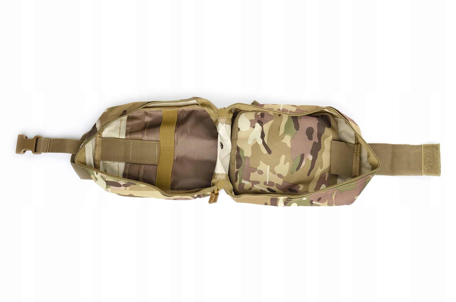 Зовні є система MOLLE для кріплення аксесуарів. Всередині багато кишень, додаткове відділення закривається на блискавку і практичні гумки для кріплення дроселів, перев'язувального матеріалу, ножиць та інших медичних предметів. Містка сумка для тактичної аптечки найвищого рівня. Аптечка також подвійно застібається по всій товщині за допомогою липучок і пластикової застібки. Ручка для перенесення в руці. Кріпиться на поясі за допомогою двох ремінців на ґудзиках, двох пластикових кілець-карабінів і системи відриву для швидкого зняття.