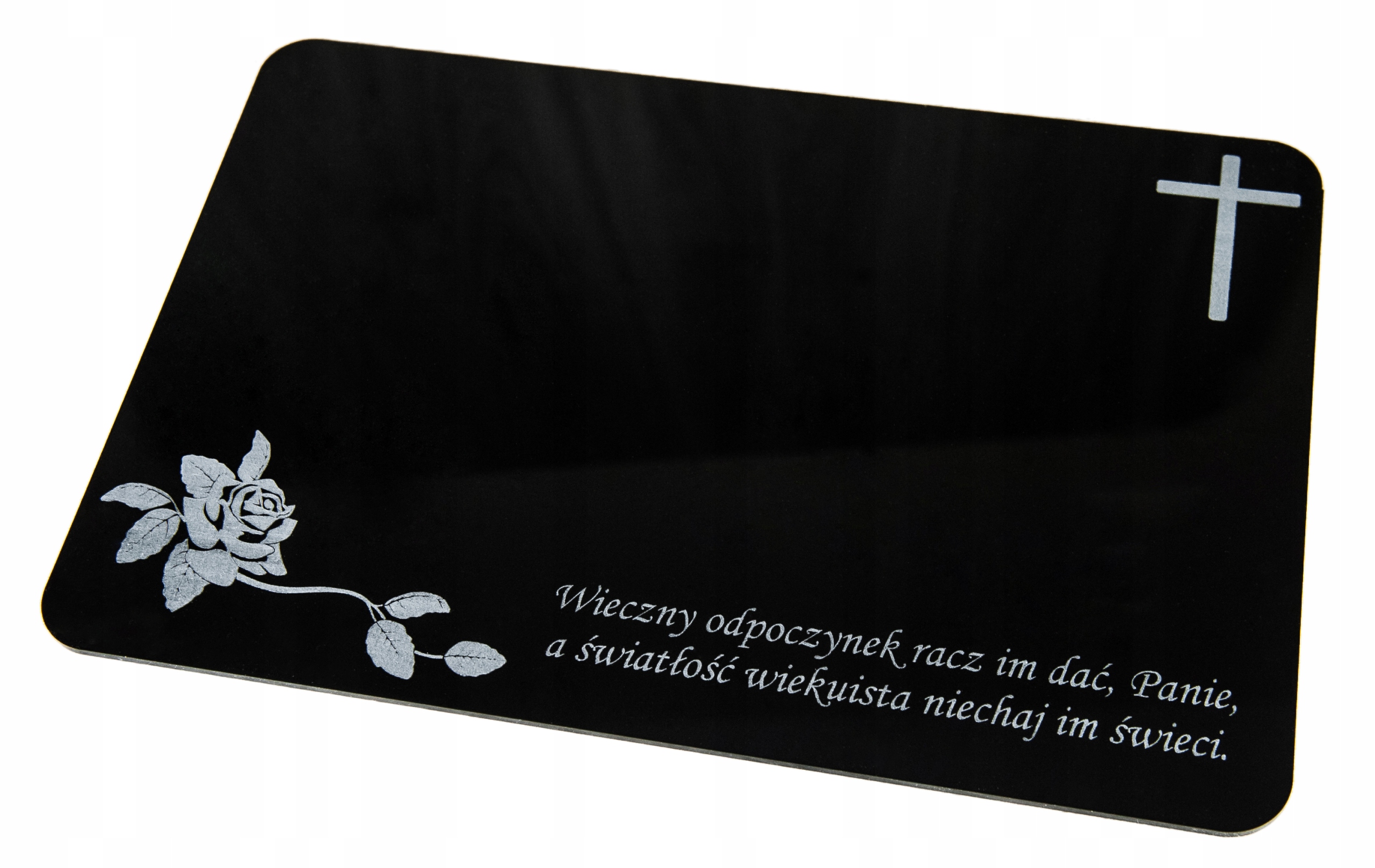 Основу прикрашає гравірування: Вічний спочинок даруй їм, Господи, і світло вічне нехай їм світить. Стенд не персоналізований. Можливе додавання власного напису за додаткову плату або на іншому аукціоні.