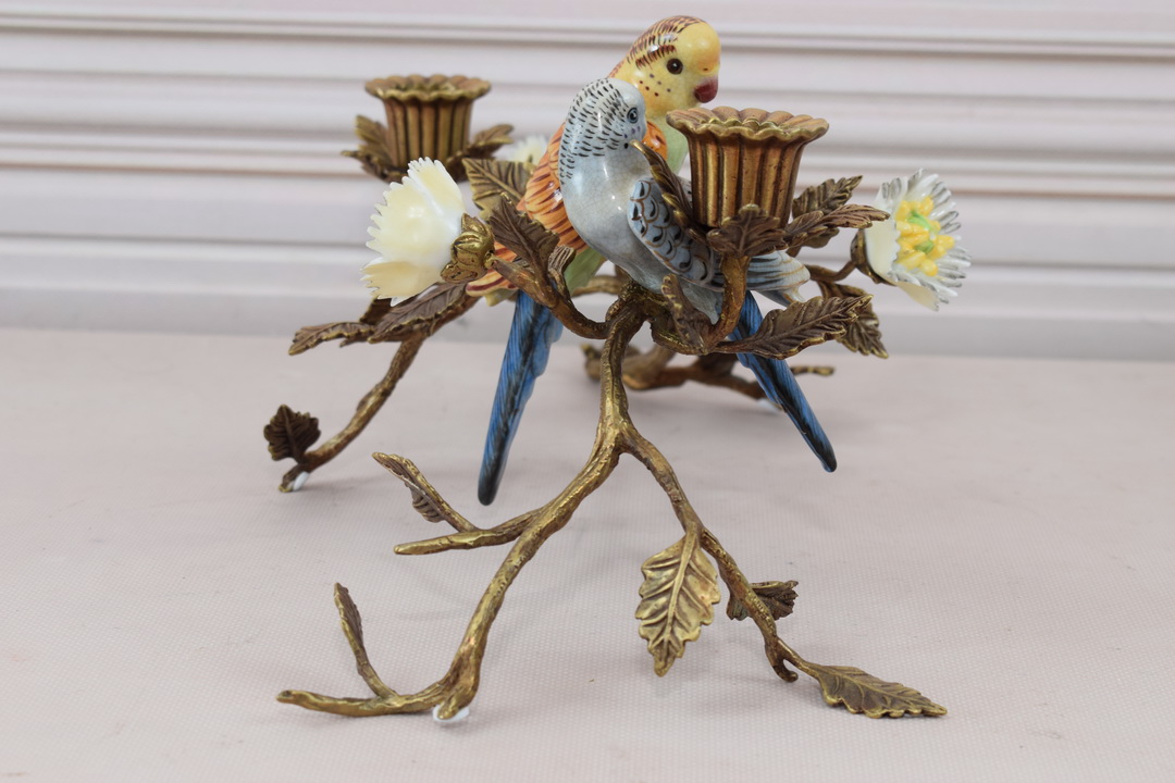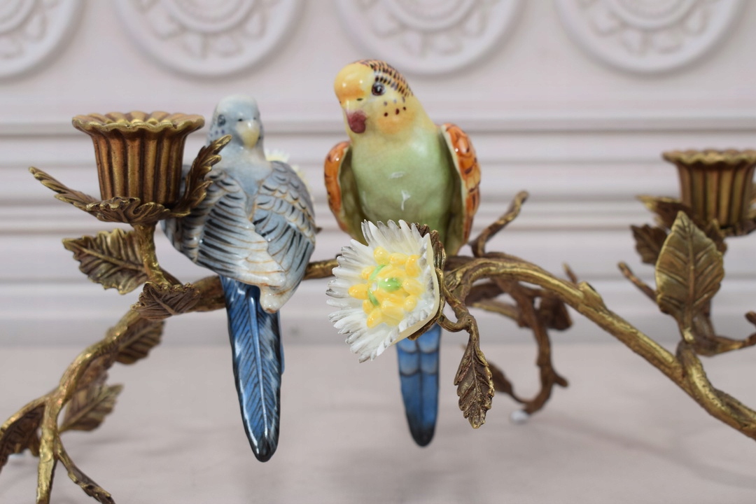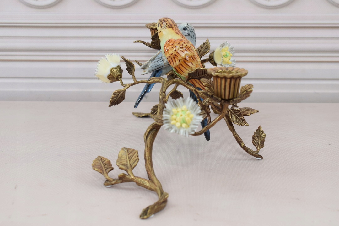 Підсвічник папуга - порцеляна + бронза - кольорові пташки - прикраса