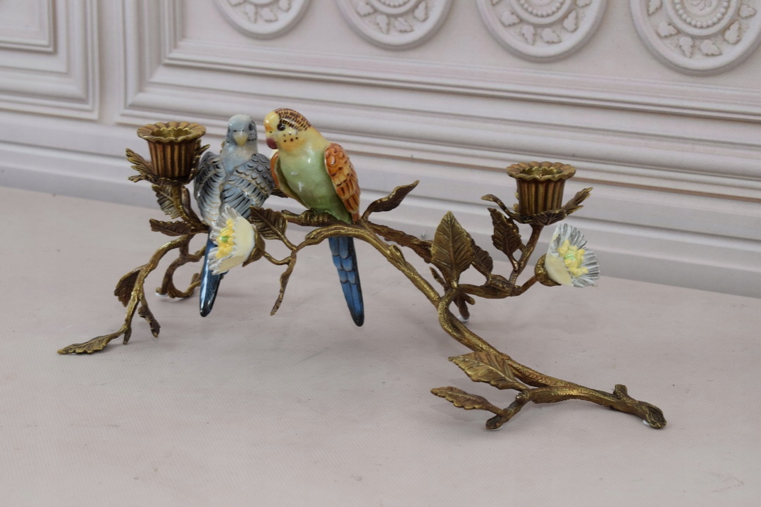 Здрастуйте, сьогодні я хочу запропонувати вам свічник ПАПУГИ з порцеляни, а свічник і прикраси з бронзи.