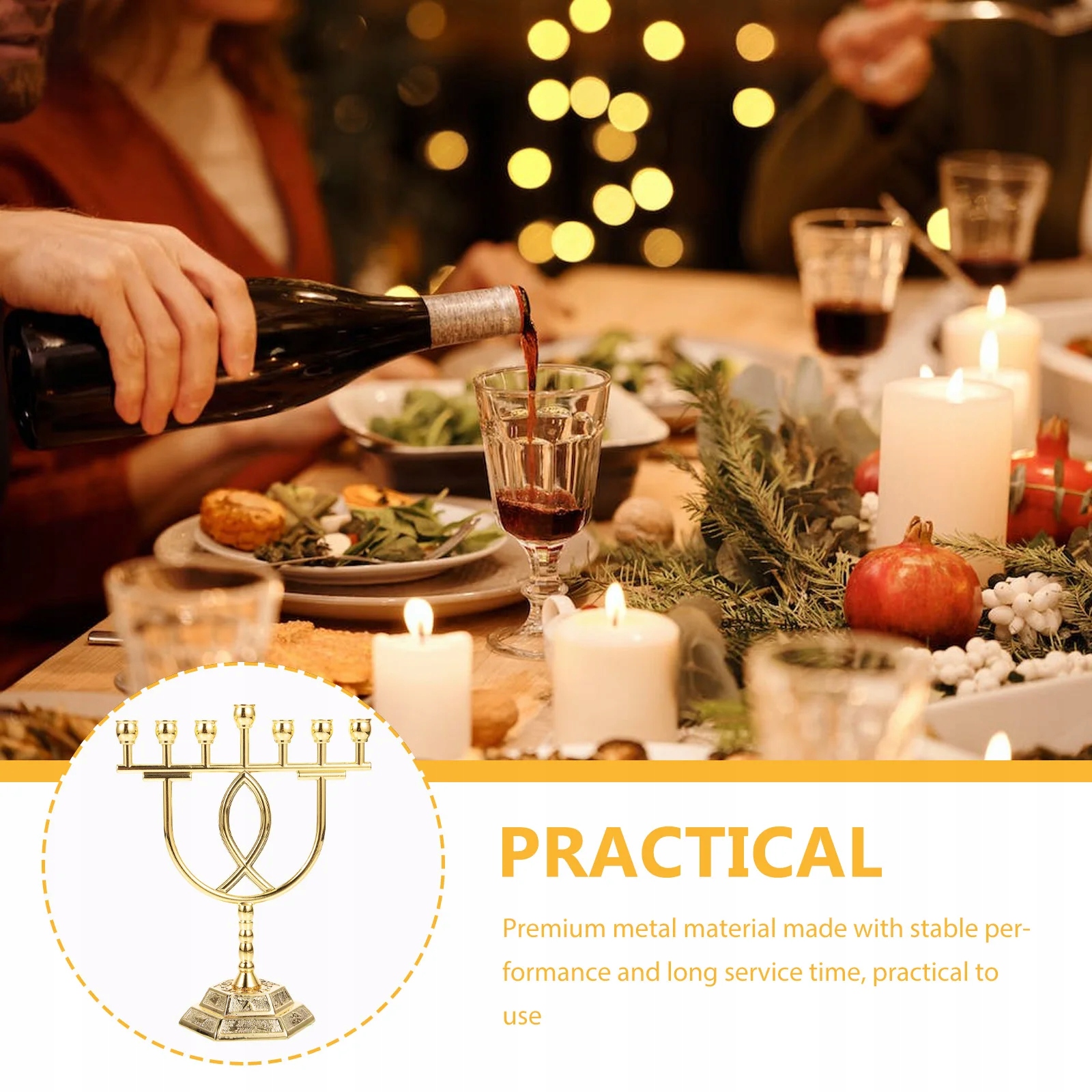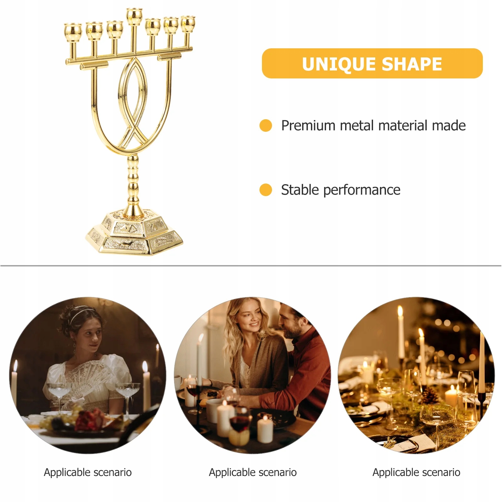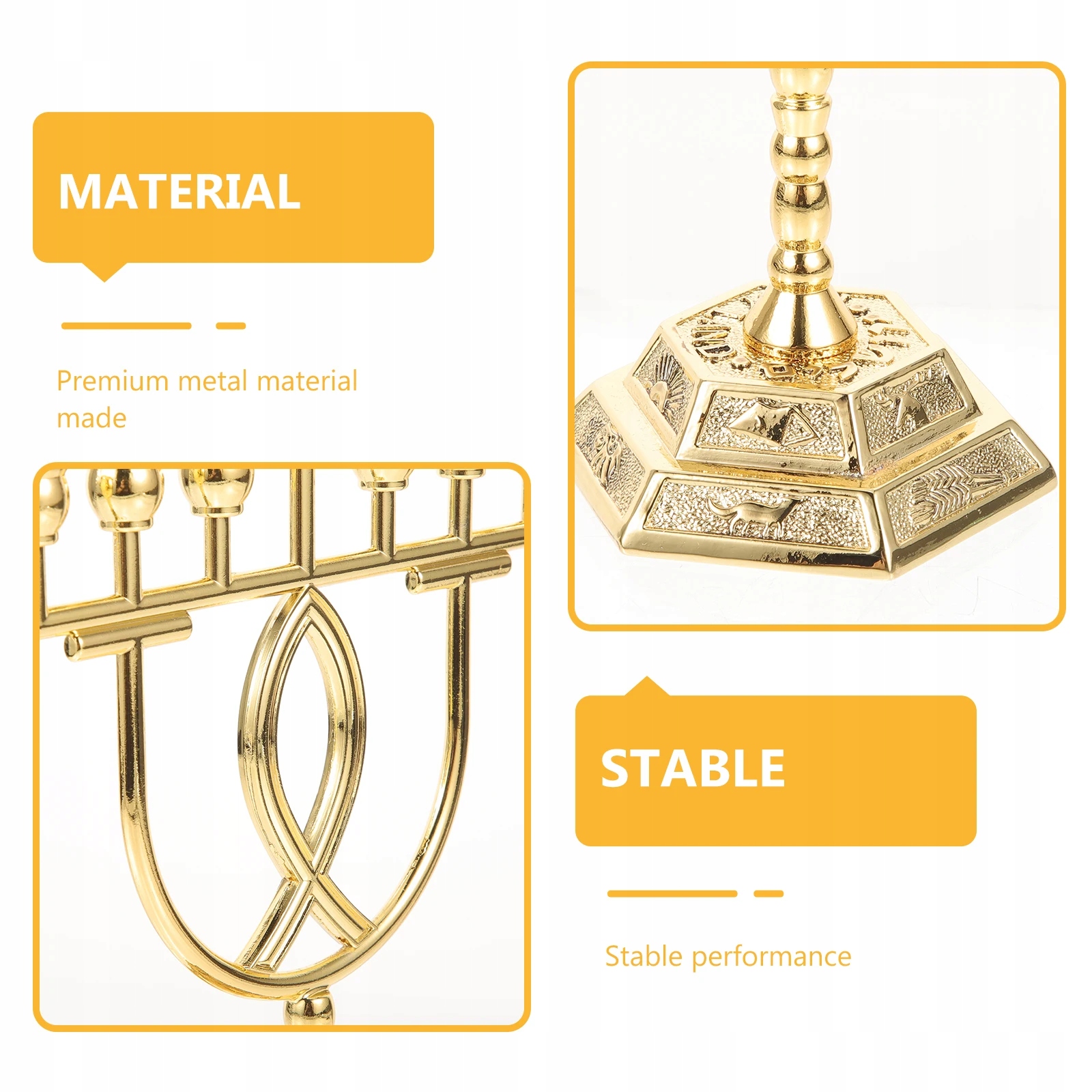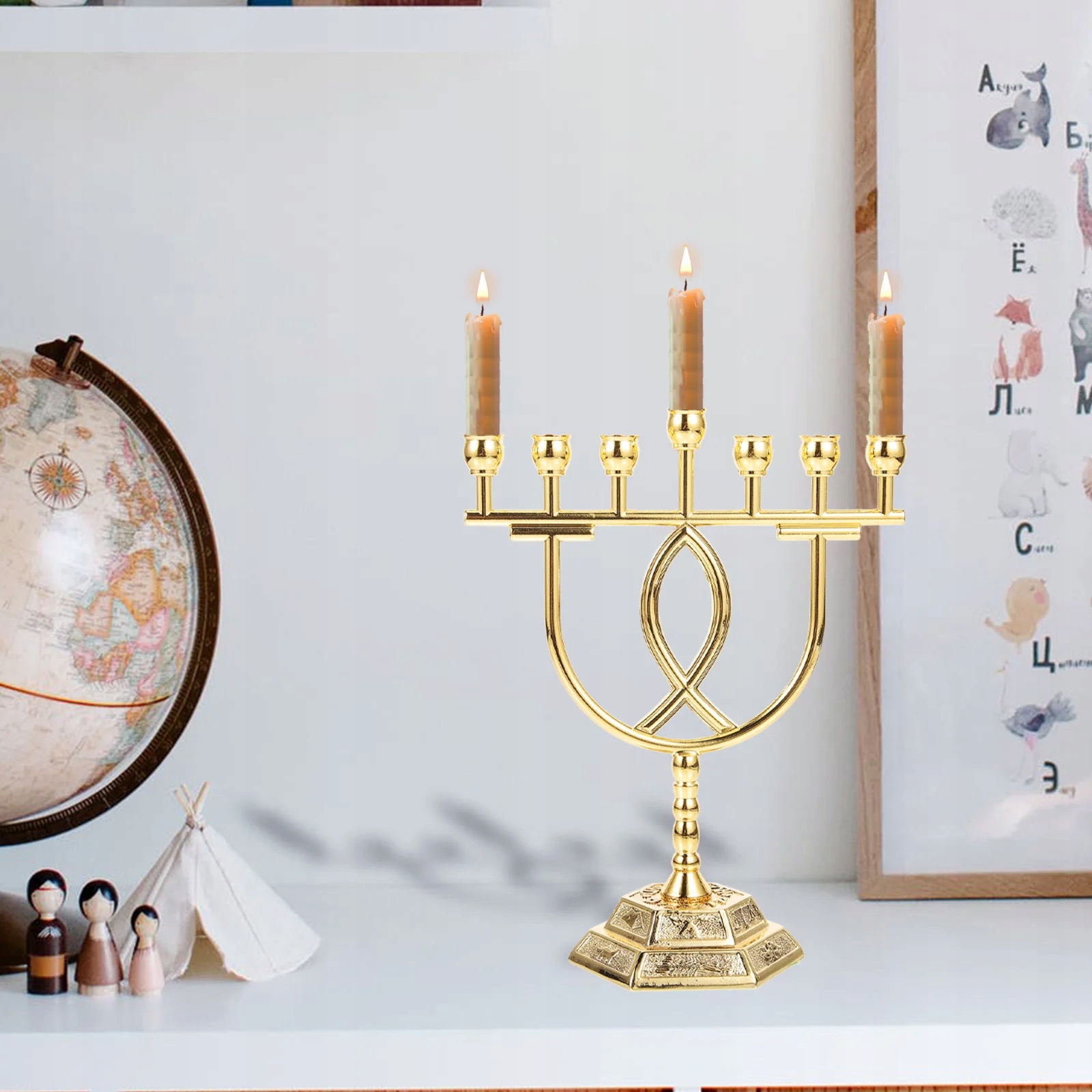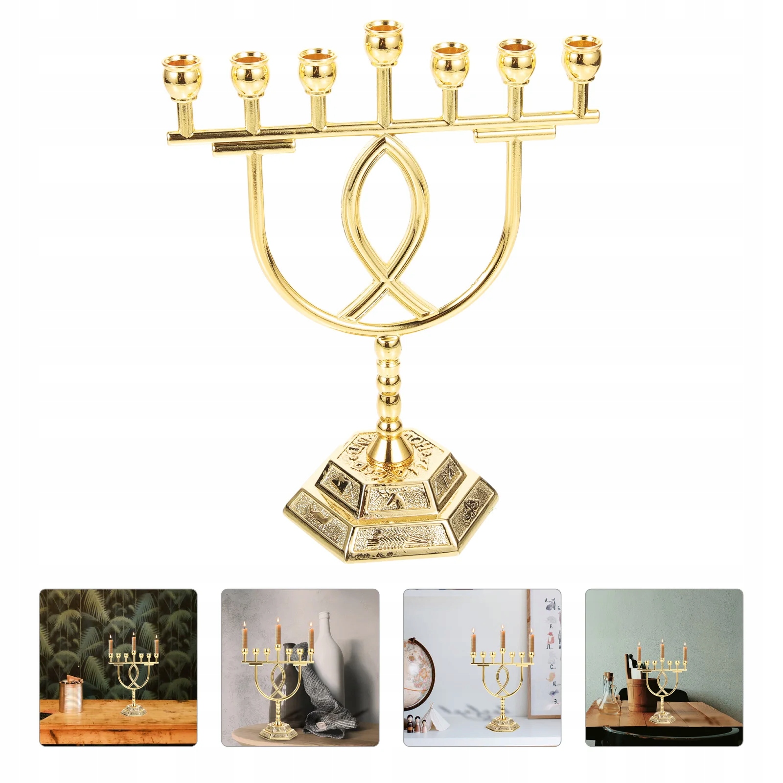 Це релігійні 7-рамкові свічники, виготовлені з безпечного матеріалу для тривалого використання. Гарний зовнішній вигляд робить його придатним для багатьох місць. Він стане чудовою прикрасою вашого дому, інтер'єру, кафе, бару, весілля та інших урочистих подій.