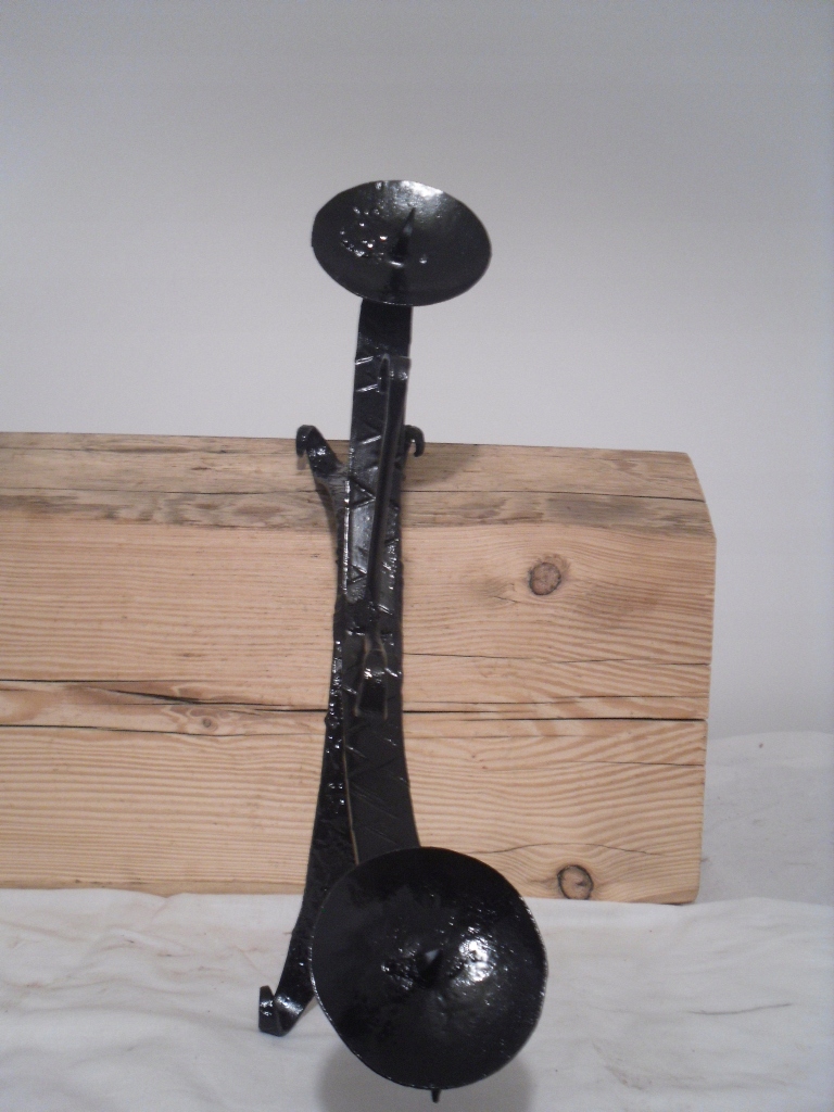Ласкаво просимо на мій аукціон. На аукціонах я зазвичай пропоную вам речі часів Польської Народної Республіки. На цьому аукціоні я пропоную ОРИГІНАЛ, дуже гарний підсвічник повністю металевий. Підсвічник на дві свічки. Підсвічник після ремонту, пофарбований ґрунтовкою та чорною фарбою (можуть бути невеликі розводи чи зміни кольору) Ймовірно, це виріб ручної роботи. Фактура нижнього плеча шорстка, верхнього виїмчаста. Дуже мило. Дивіться фото.