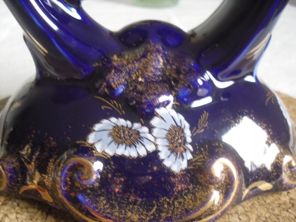 Привіт. На своїх аукціонах я зазвичай пропоную речі часів ПНР і не тільки. На цьому аукціоні я пропоную керамічний порцеляновий свічник красивого кобальтового синього кольору з позолотою та розмальованими квітами. Підсвічник на 1 свічку. Красиво оформлений. Стан дуже хороший, без дефектів, тріщин та інших дефектів, мінімальні подряпини та делікатні плями. Фірмовий 100% кобальт на дні. Дивіться фотографії.
