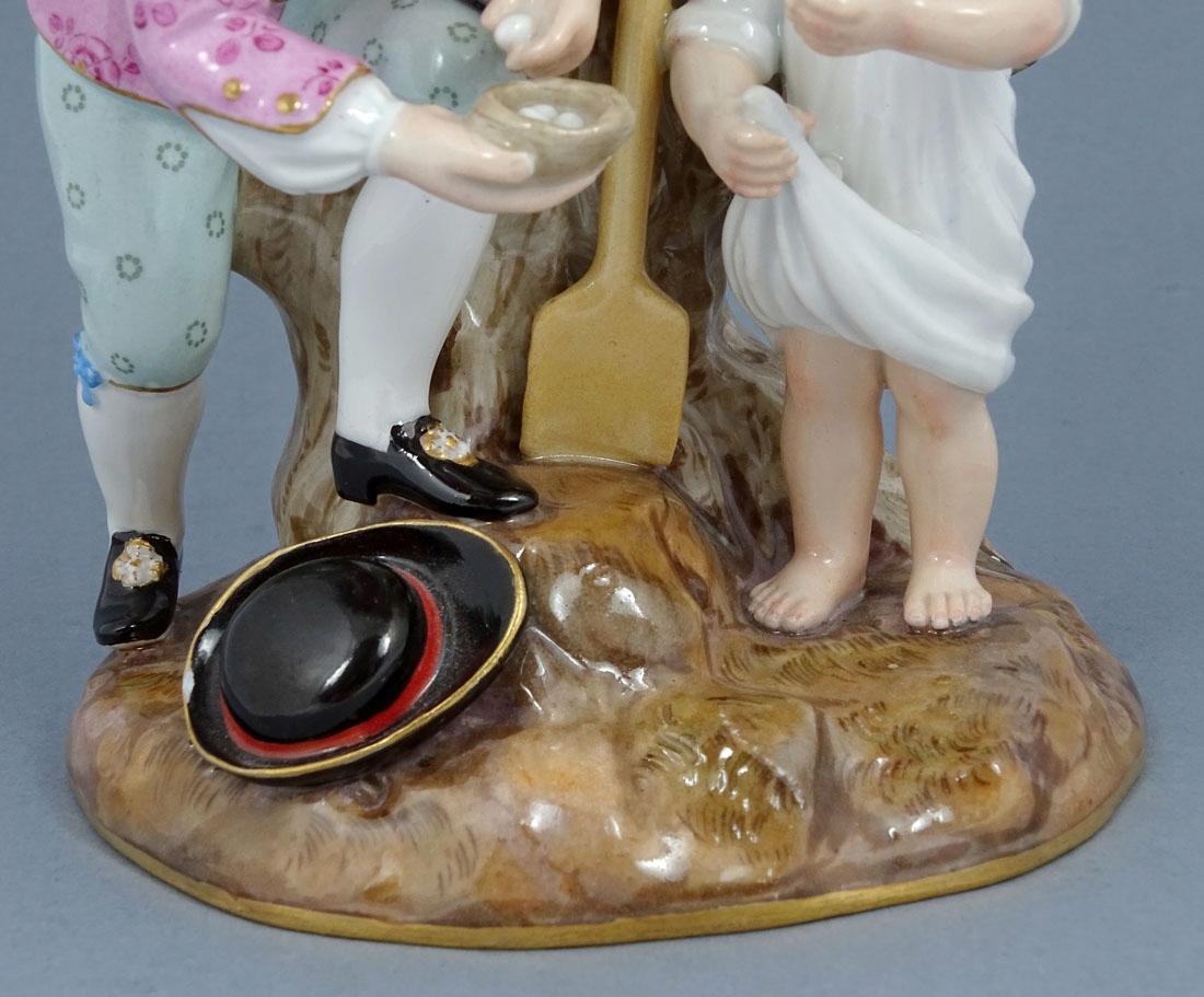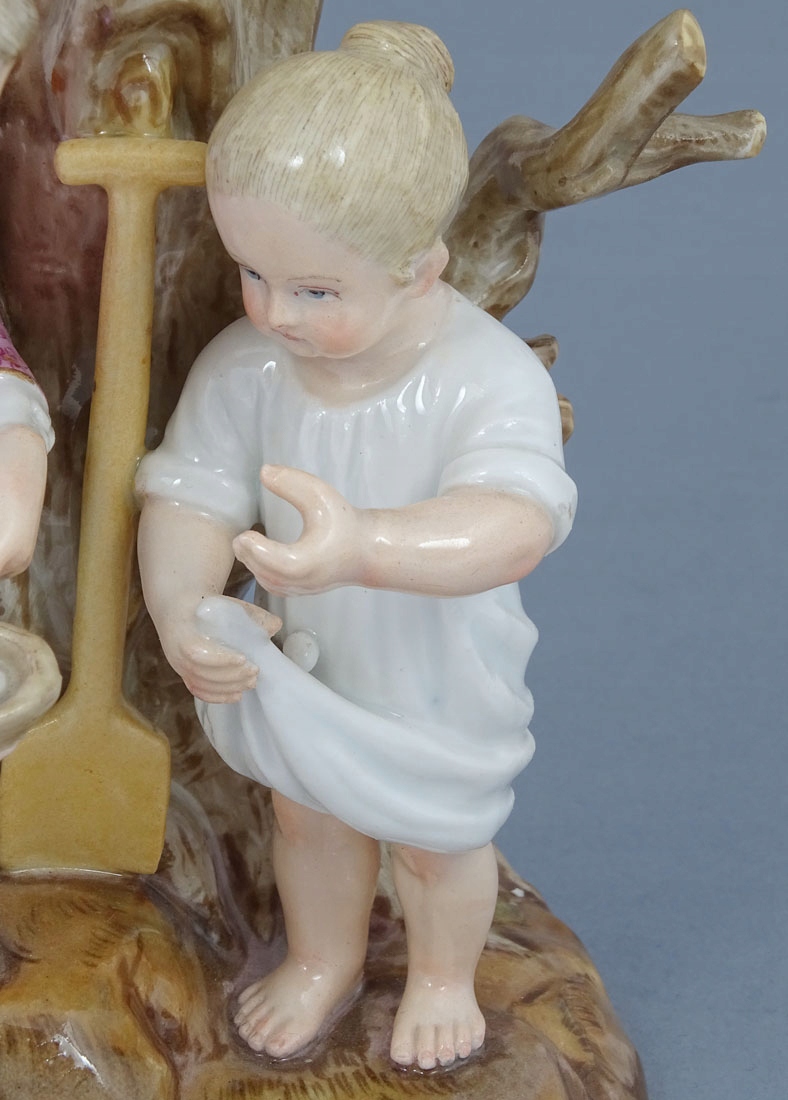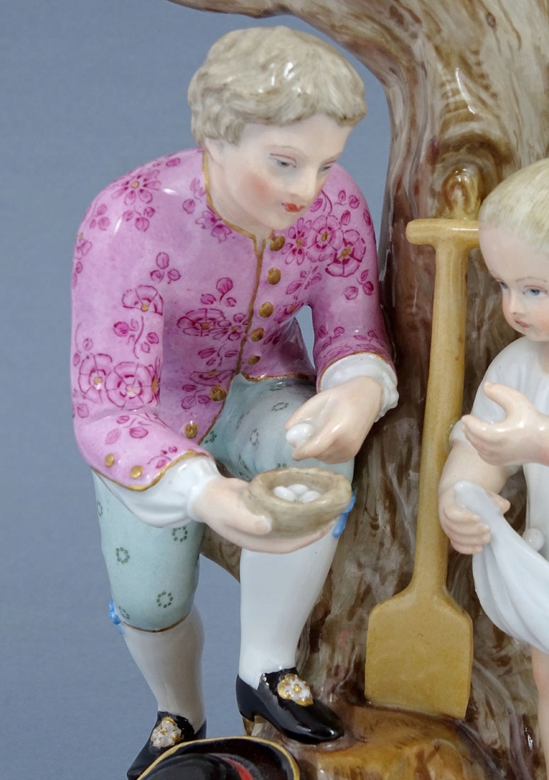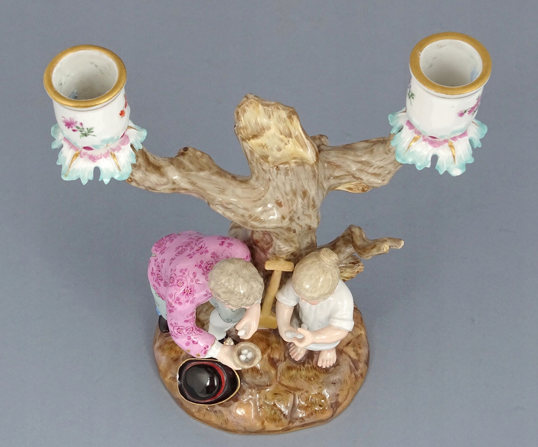 з круглою, злегка дугоподібною основою, на якій видно невелике дерево з двома гілками з боків. На передньому плані фігура чоловіка, який збирає перепелині яйця і віддає їх маленькій дівчинці, яка ховає їх у своїй сукні. Лопата і капелюх лежать перед деревом. На обох гілках у верхній частині тонкі чашечки для свічок, прикрашені барвистими квітами, а під ними пластини у вигляді листочків.