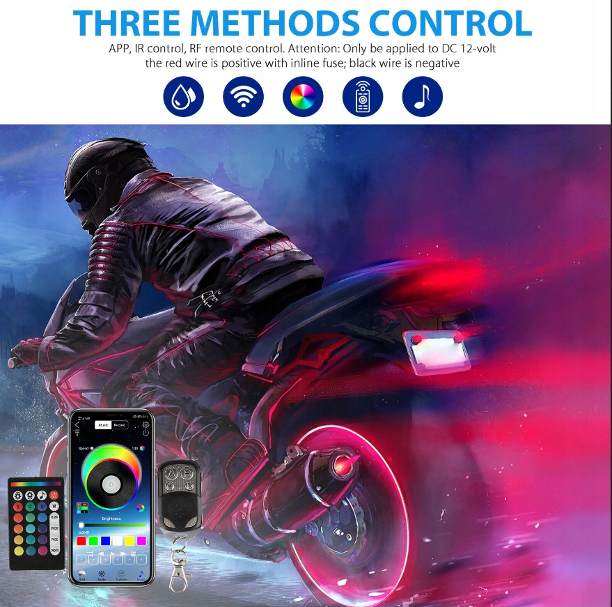 * багато кольорового та музичного режиму: 16 статичних кольорів, 2 режими кольорового циклу, 3 режими миготіння та 1 режим зникнення з регульованою яскравістю. Мотоцикл буде бити легкий пояс ритмом. Створіть приємну атмосферу, коли у вас є подія на свіжому повітрі.