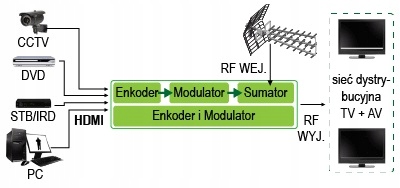 Пристрій є одноканальним модулятором. Це означає, що до нього можна підключити одне джерело сигналу та модулювати його в цифровий мультиплекс DVB-T. Параметри конфігурації дозволяють додавати вихідний потік до наявної інсталяції DVB-T у спосіб, вибраний адміністратором або інвестором.