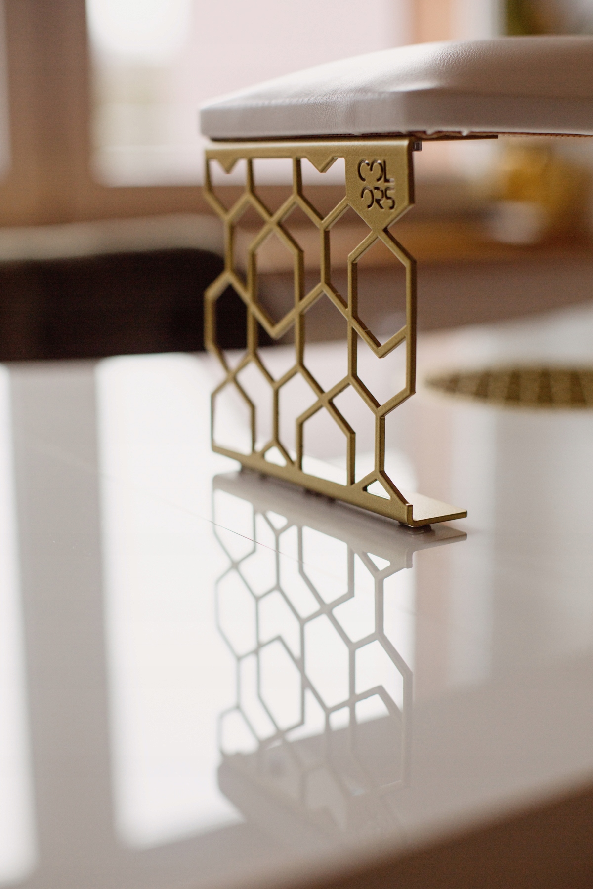 Золоті ніжки для додаткової елегантності: золоті ніжки не тільки міцні, але й ідеально поєднуються з меблями Colrs Beauty, створюючи розкішне робоче середовище.