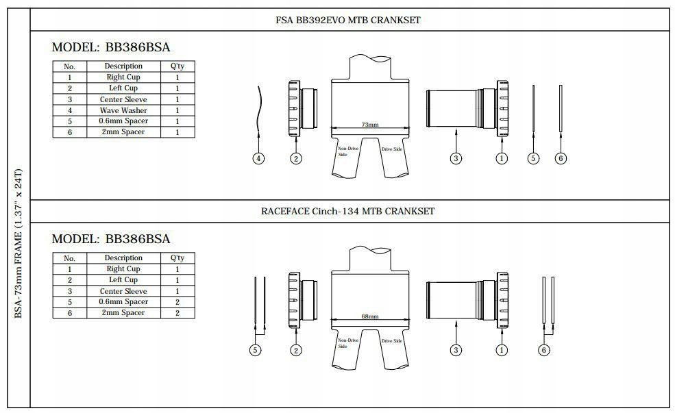 Підтримка BB392BS дозволяє використовувати тріщини з діаметром 30 мм вісь як частини різьбових муффів BSA. Підтримка виготовляється з точно обробленого сплаву, щоб забезпечити ідеальну придатність до рами та оптимальної платформи для плаценти. BB392BSA призначений для тріщин MTB