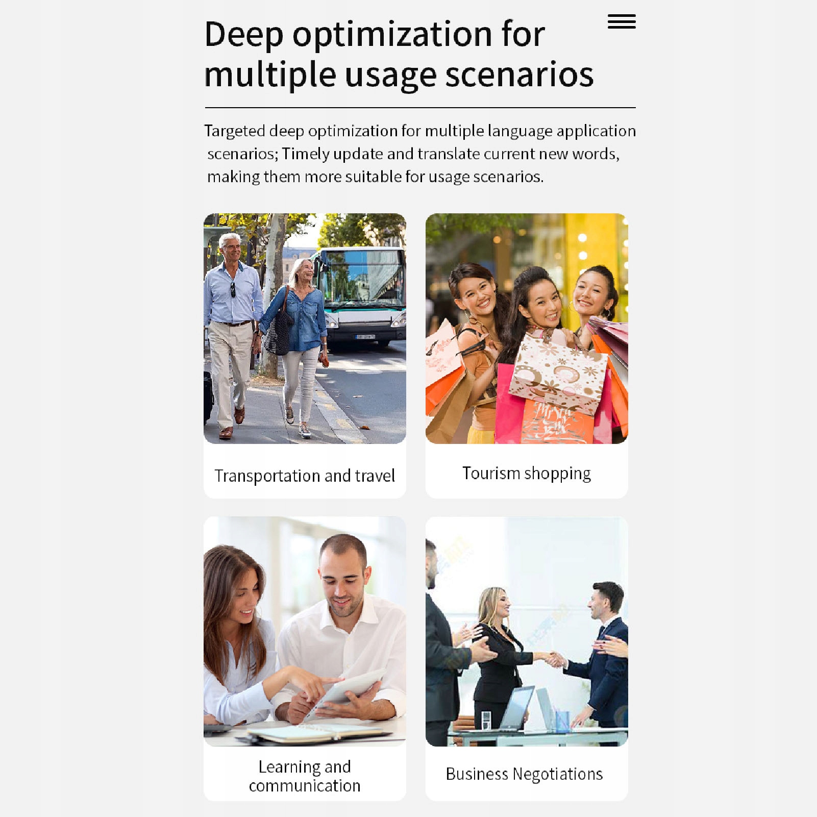 Функція:1. TuNaNaMaking Multi-Language: підтримує понад 140 мов, полегшує подорожі та багатозадачний обмін мовами, допомагає усунути мовні бар’єри та вільно спілкуватися, а також сприяє дружній взаємодії та обміну між різними країнами.