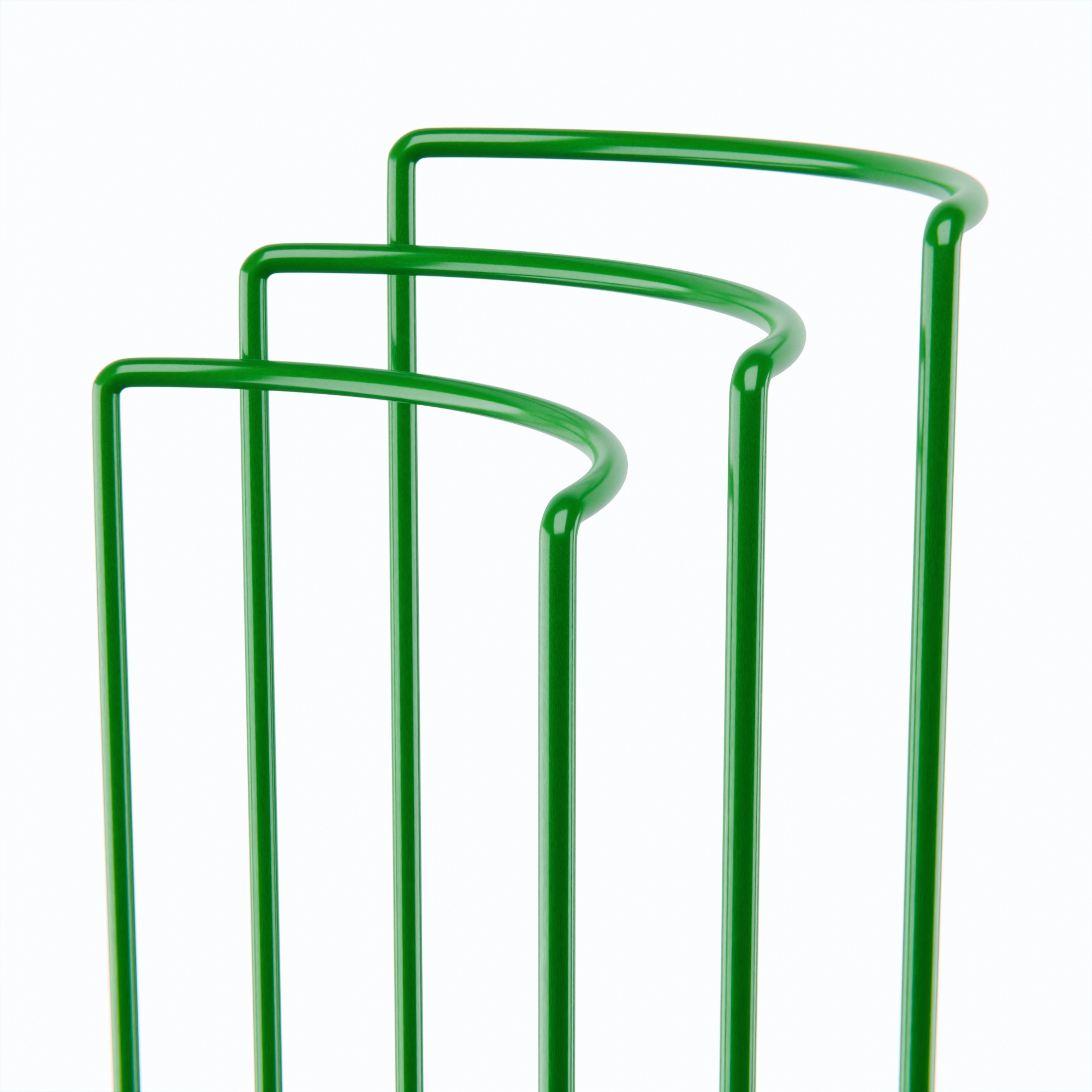 Матеріал стійкий до змінних погодних умов, таких як сонце або дощ, але також на вологу, на відміну від дерев’яних або бамбукових опор, метал не гниє і не розпадається в землі. Зелений колір опори ідеально відповідатиме фон рослини.