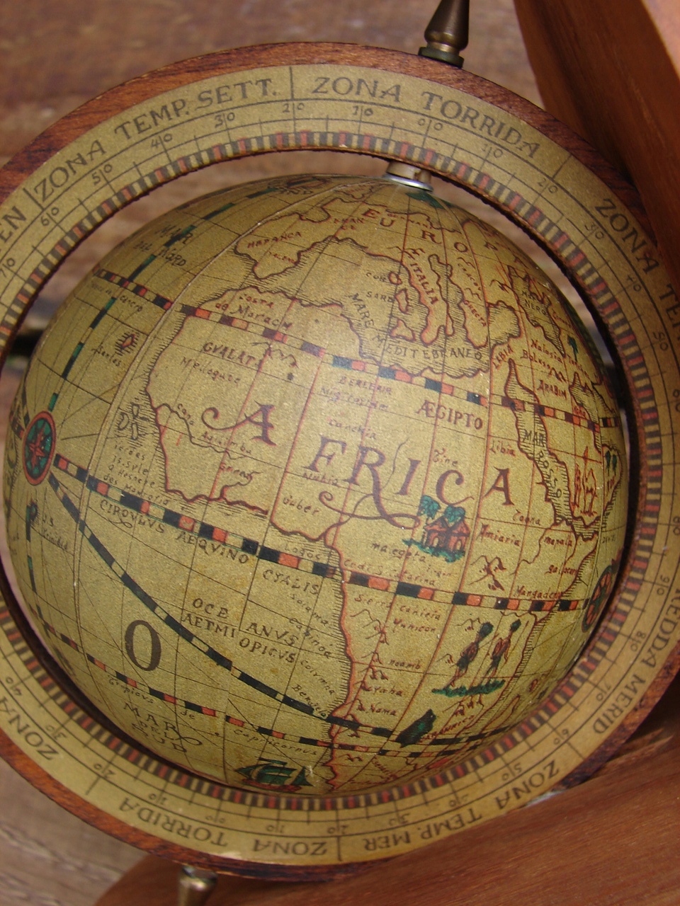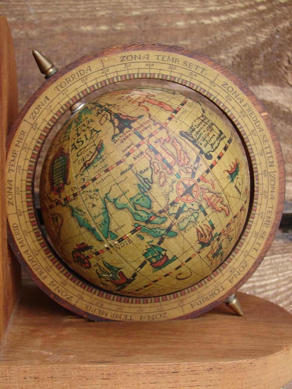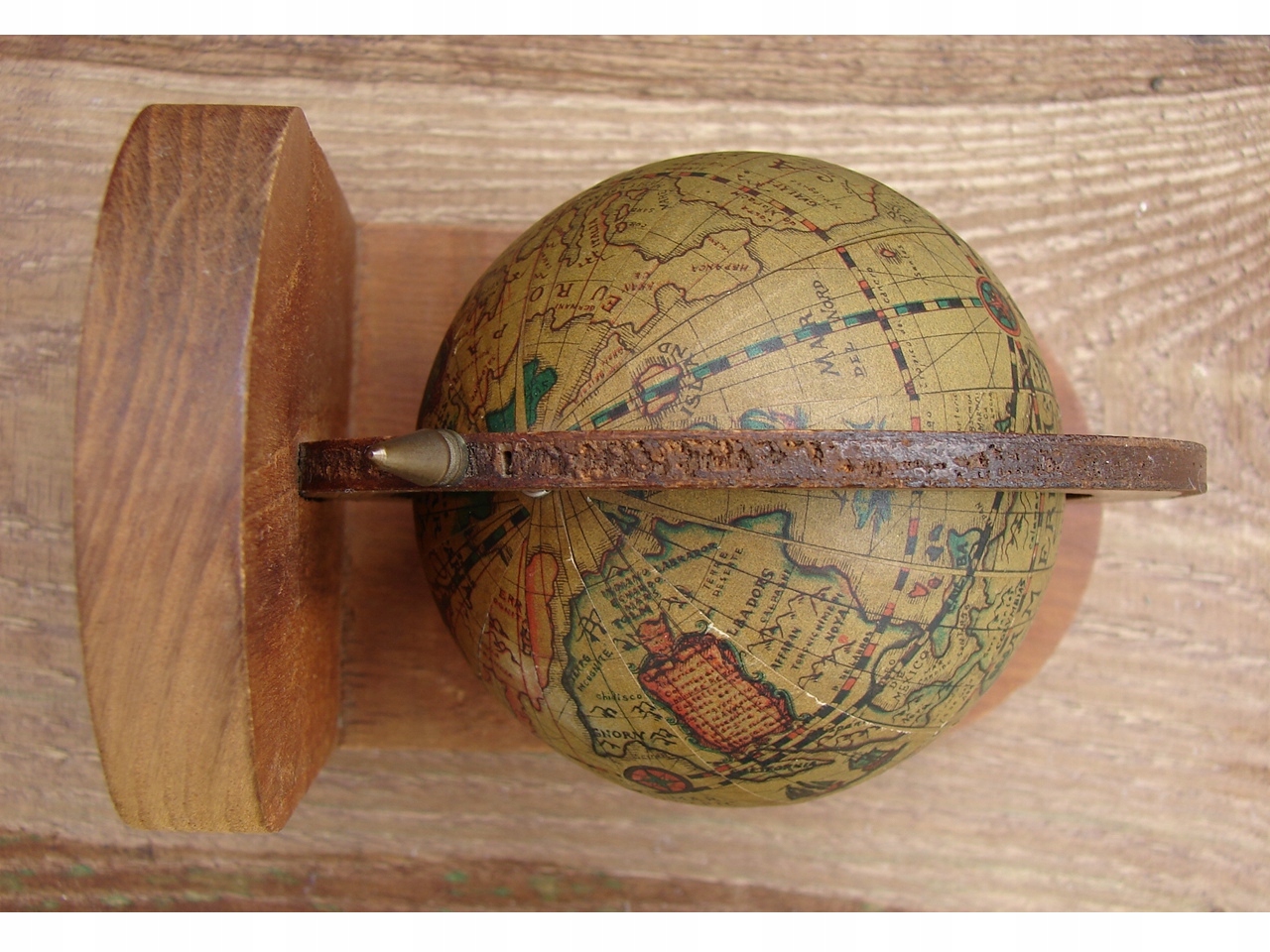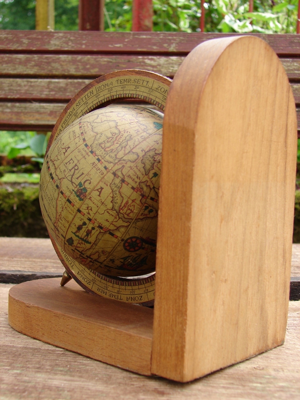 дерев'яний базовий глобус, виготовлений з пластикової та паперової обшивки.