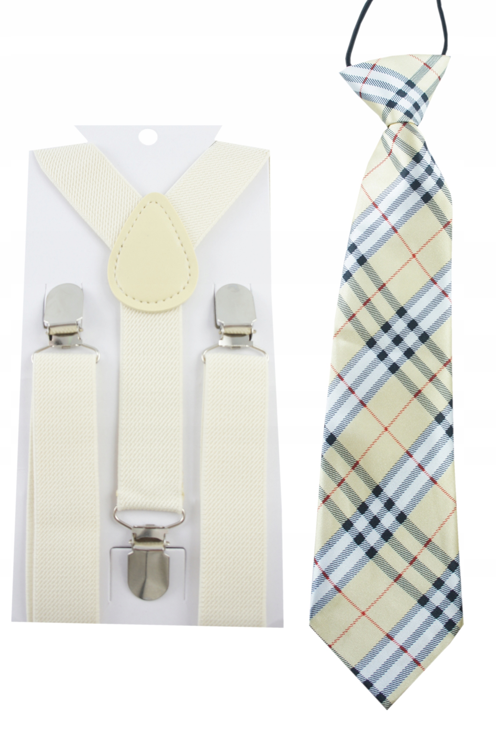 Підтяжки штанів і картата краватка на гумці