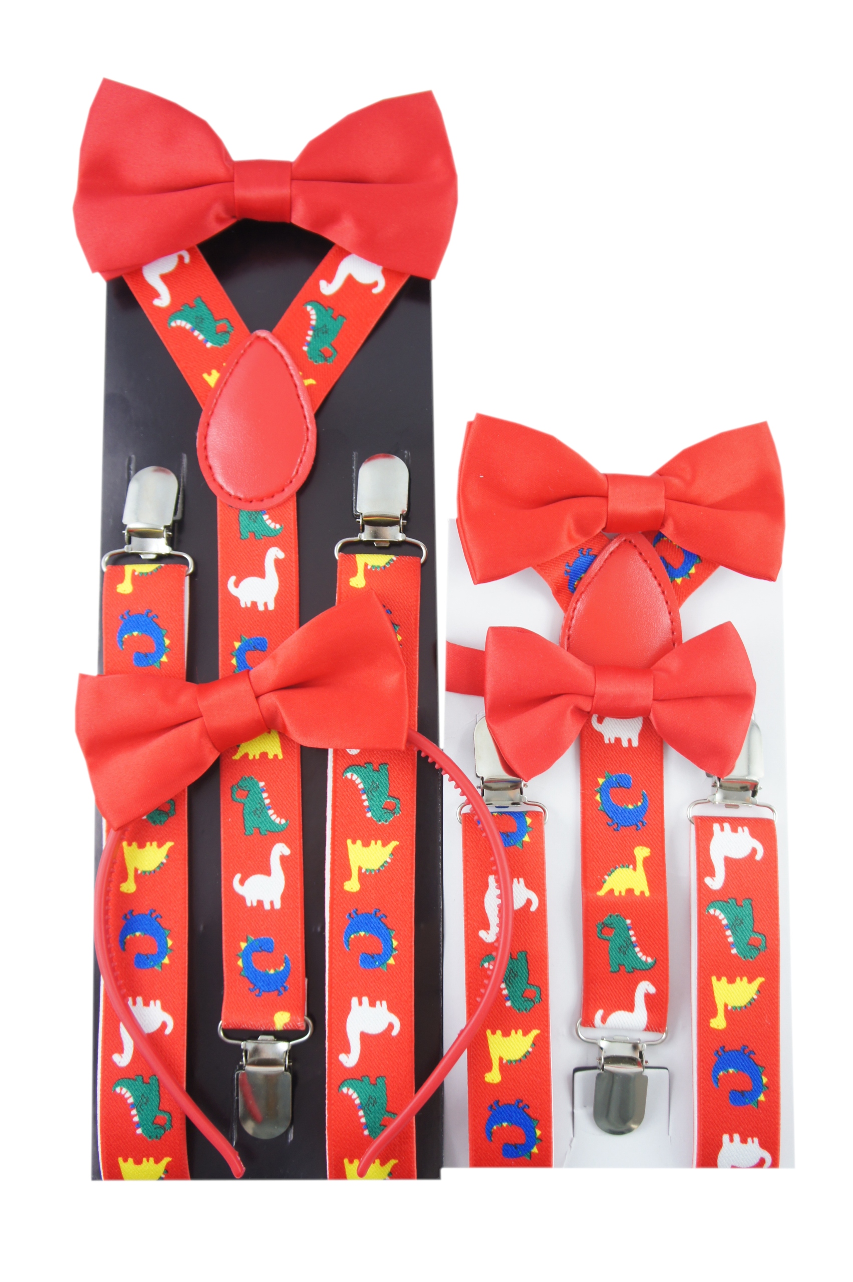 Підтяжки та краватка-метелик для дітей 2-8 років ЧЕРВОНІ ДИНОЗАВРИ, кумедний малюнок балик