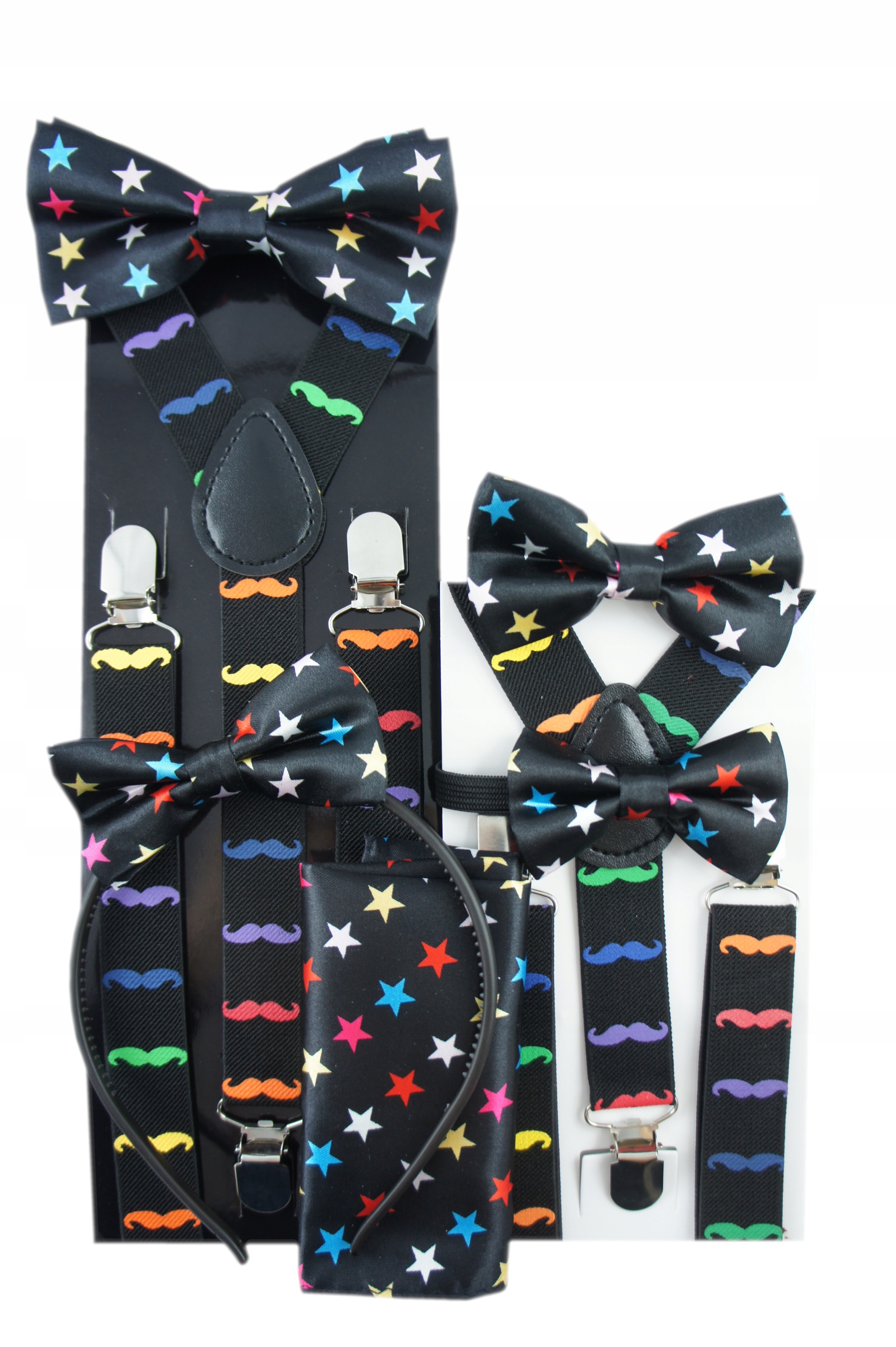 Підтяжки та краватка-метелик для хлопчика 0-24 м КОЛЬОРОВІ УСА НА ДЕНЬ НАРОДЖЕННЯ