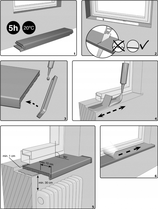 Підвіконня внутрішньої камери покриті високоякісним декоративним ПВХ ламінатом, що дозволяє легко підтримувати їх у чистоті. Підходять до всіх типів вікон, особливо ПВХ вікон.