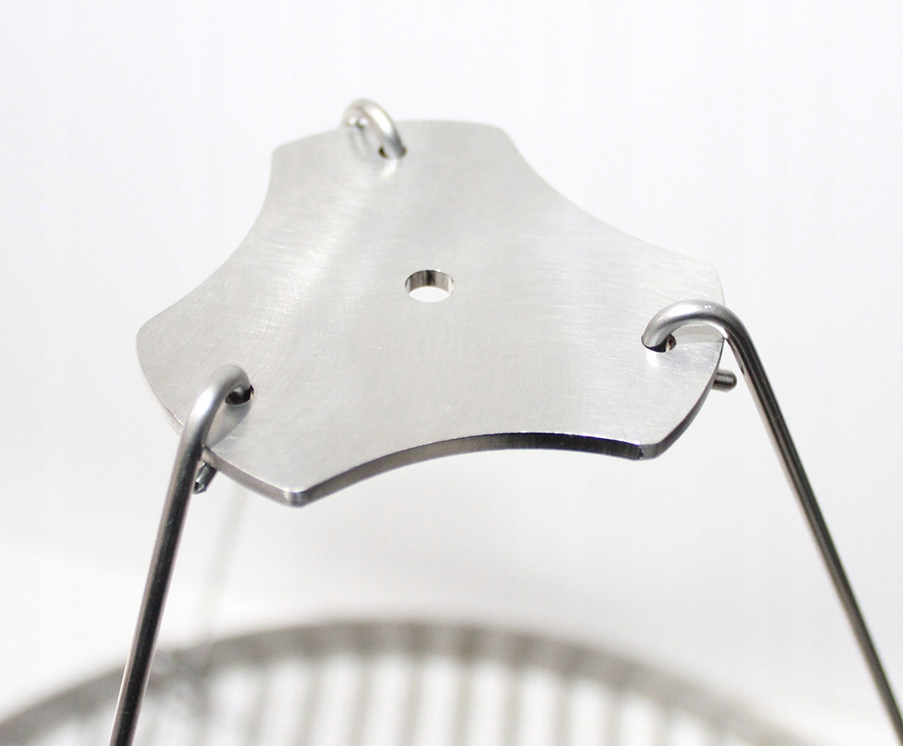 Елемент ізнержавіючої сталі (1.4301), має гачки завдяки який решітку можна встановити на раму або триногу.