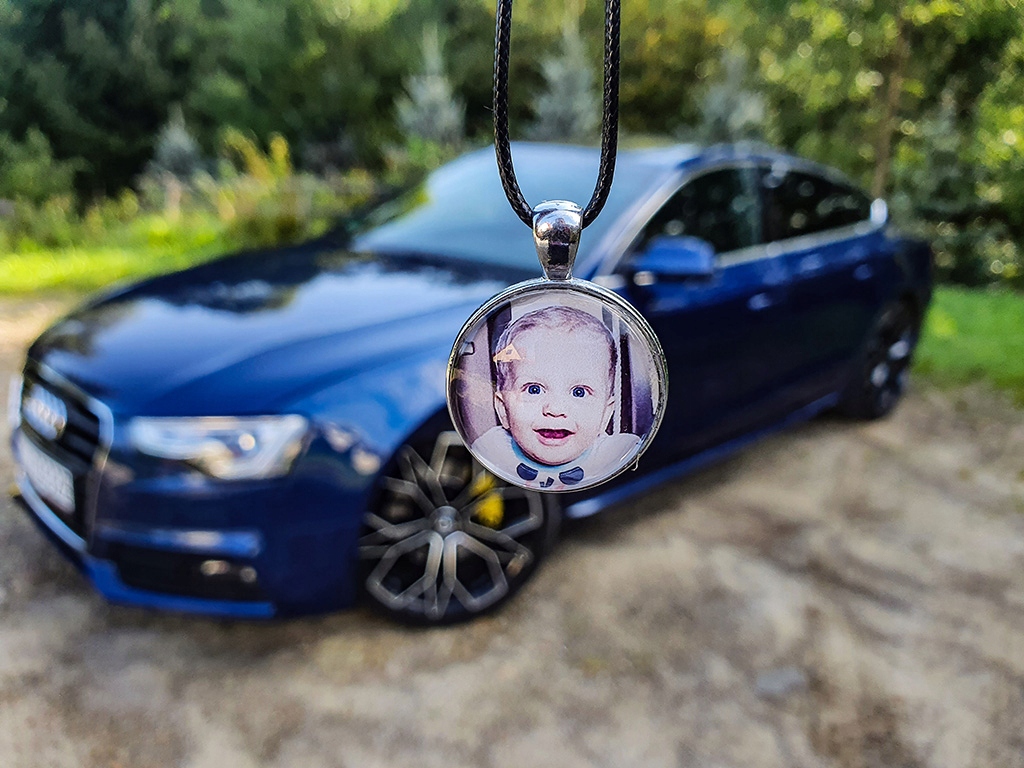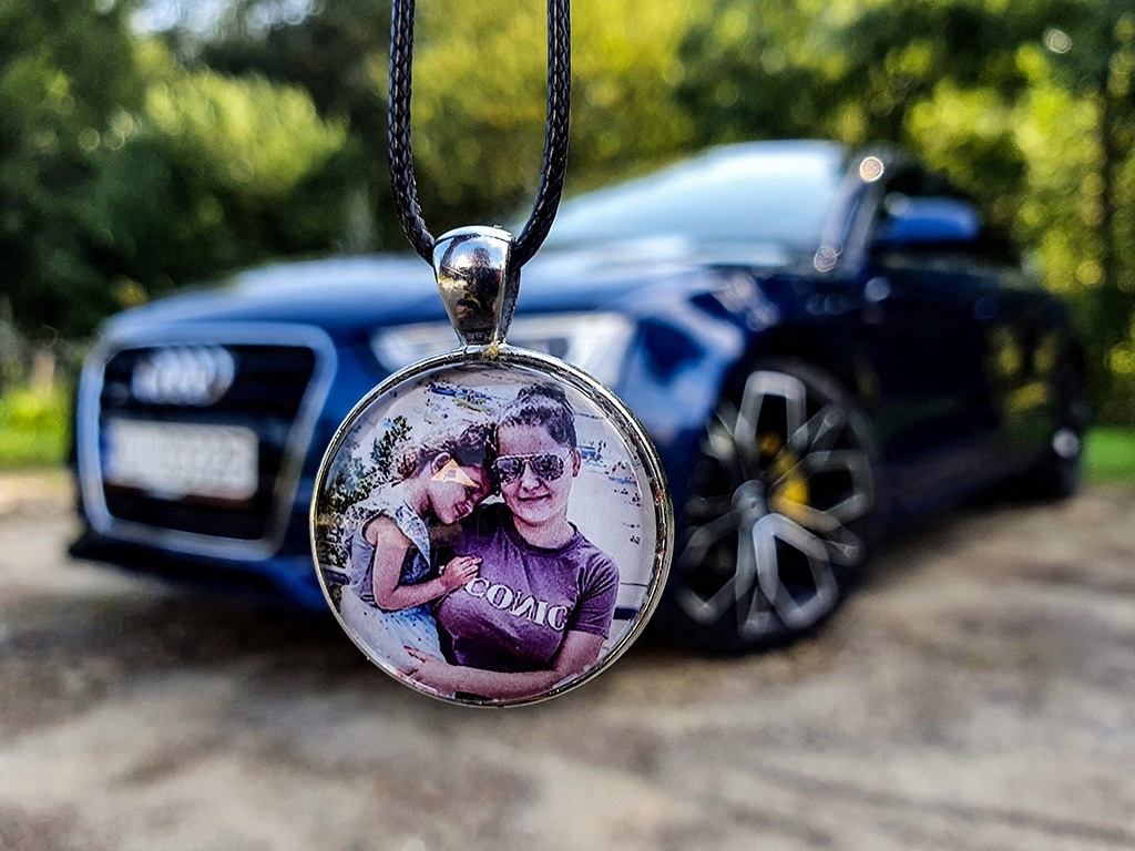 Скляна автомобільна підвіска з надісланими вами фотографіями, графікою та текстом.