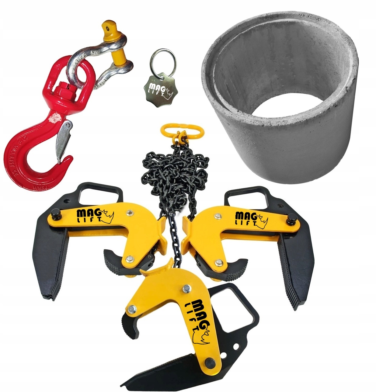 ЗАСТОСУВАННЯ: для вертикального і горизонтального транспортування бетонних кілець з різною товщиною стінок. Їх можна застосовувати при твердих і сухих хребцях. Ручки - це додаткове обладнання на гаку підйомного крана, мостового крана, підйомного крана, екскаватора, навантажувача або іншого пристрою для вертикального та горизонтального транспортування разом з поворотним гаком з дужкою, що виконує функцію поворотної платформи.