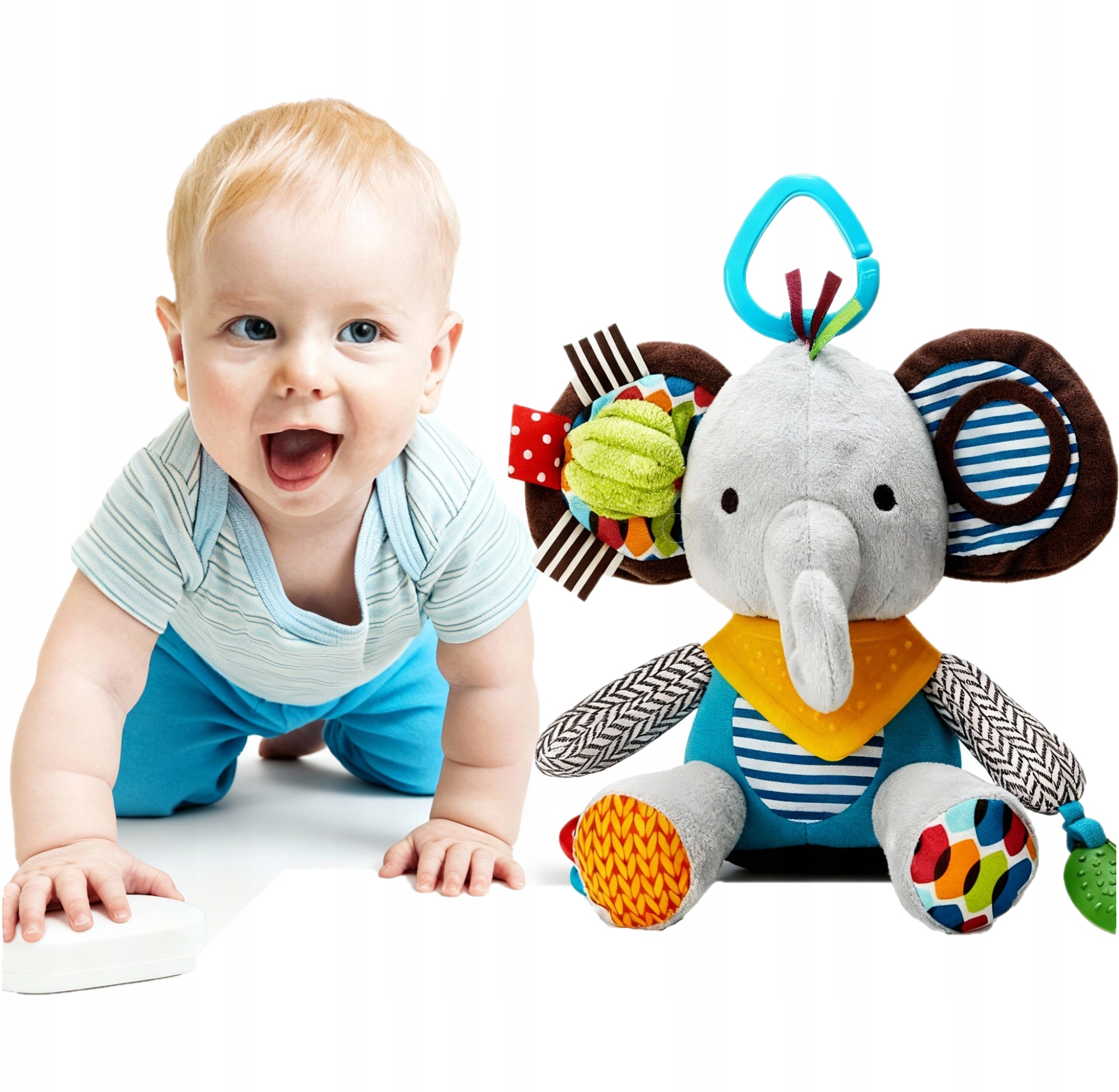 ПІДВІСКА ДЛЯ КОЛЯСКИ, СЕНСОРНИЙ ТАЛІСМІН, ОБНІЙКИ, ПЛЯШЕВИЙ СЛОНЕНИК 🐘