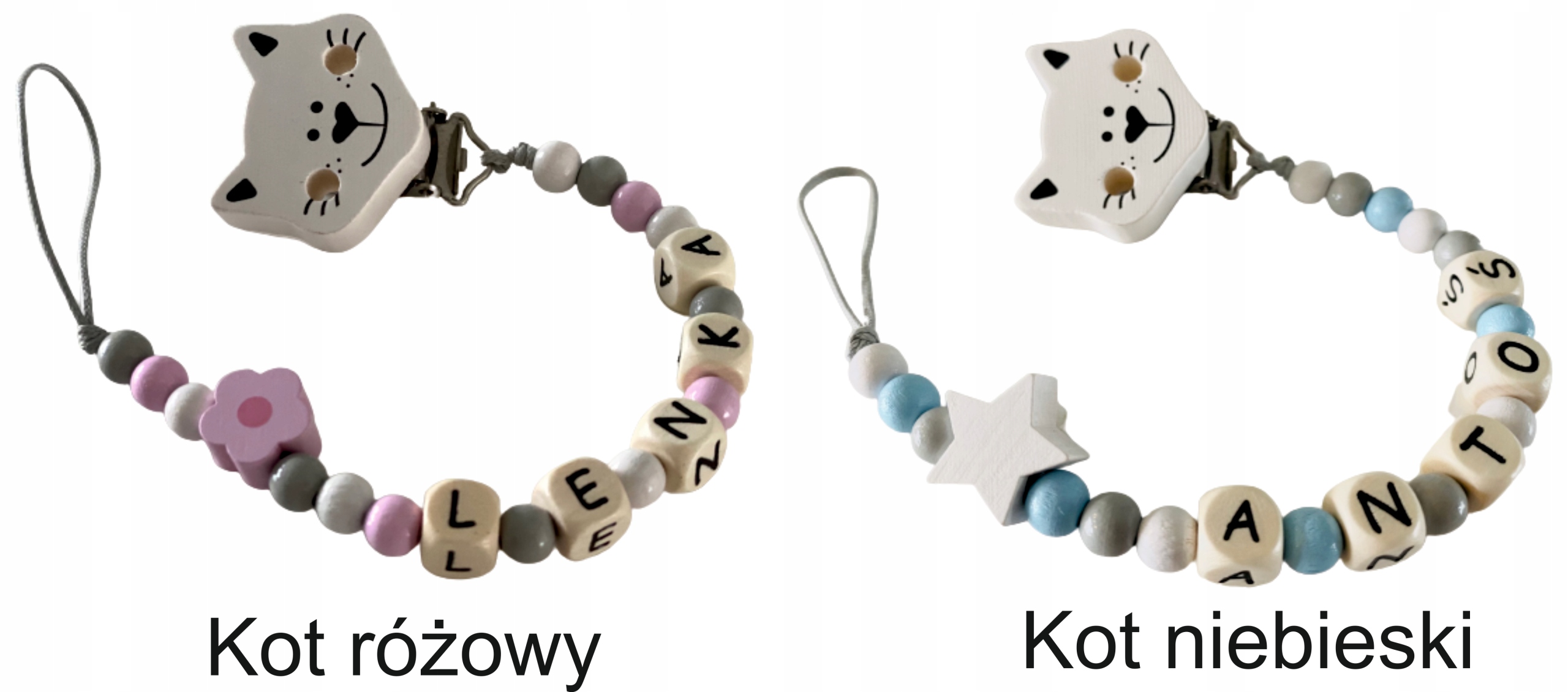 Дерев'яні підвіски-пустушки, з іменем і без, підвіски з натурального дерева, сертифіковані лаковані намистини, нитка з поліестеру.