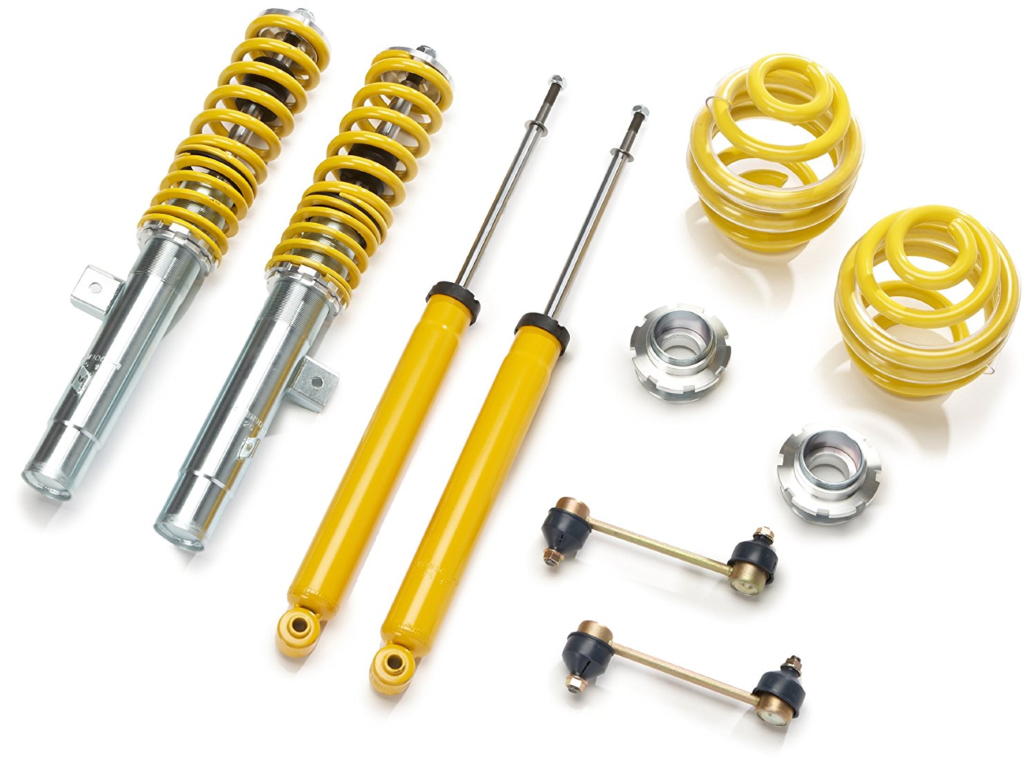 В комплект входять 2 різьбових амортизатора, 4 спортивні пружини, задні амортизатори, задні регулювальні манжети, ключ для регулювання висоти, укорочені стабілізаційні тяги. і сертифікат TUV