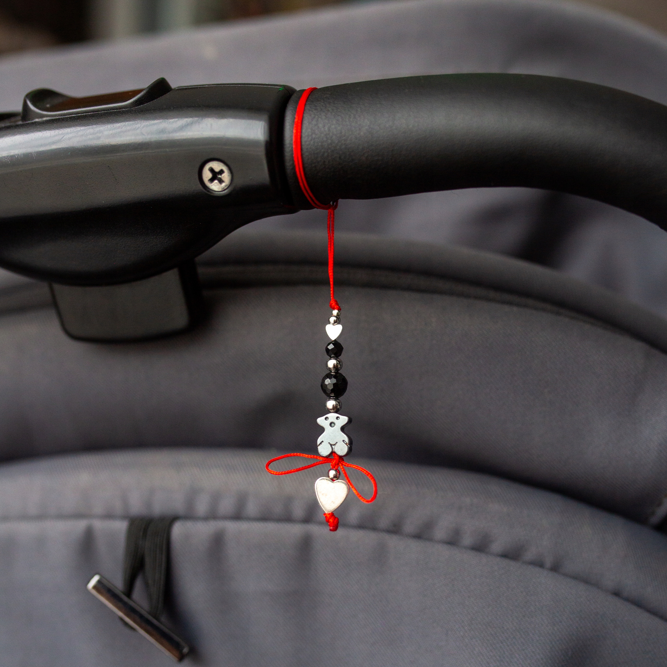ПІДВІСКА НА КОЛЯСКУ - каміння і червона нитка, ведмедик і захист