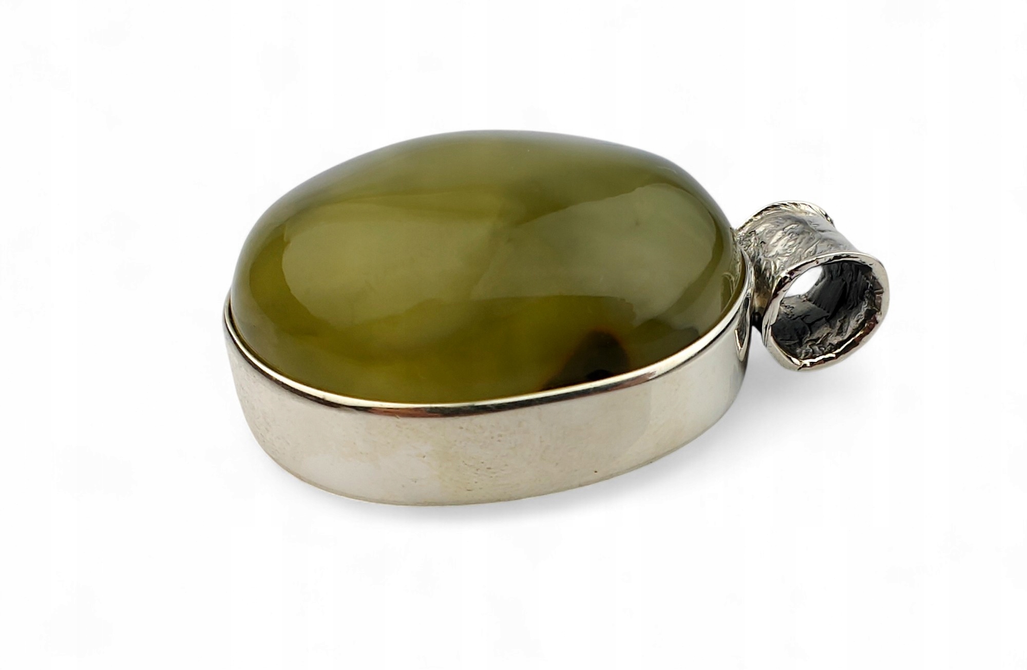 Підвіска підвіски зеленого балтійського бурштину з хмарним срібним овалом