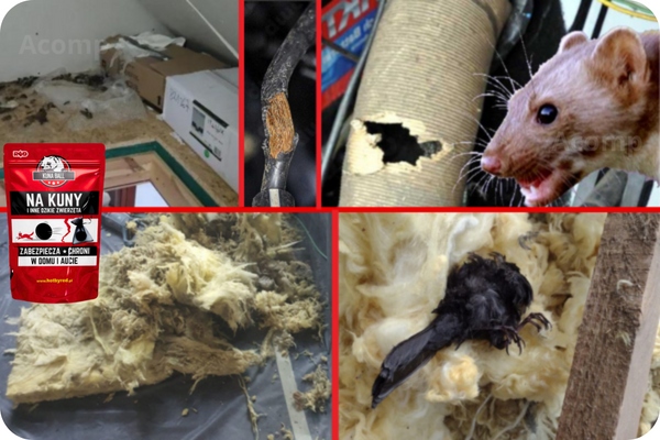 - Пошкодження на горищах - куниця може гніздитися на горищах, руйнуючи теплоізоляцію, електричні кабелі або конструкцію будівельних матеріалів. Продукт запобігає їх присутності в таких місцях.
