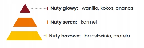 Аромат відкривається нотами ванілі, кокоса та ананаса, створюючи теплий, солодкий і фруктовий початок. У серці композиції домінує карамель, надаючи аромату приємну м'якість. База — персик і абрикос, які доповнюють ціле соковитими фруктовими акцентами, роблячи будь-який простір затишнішим.