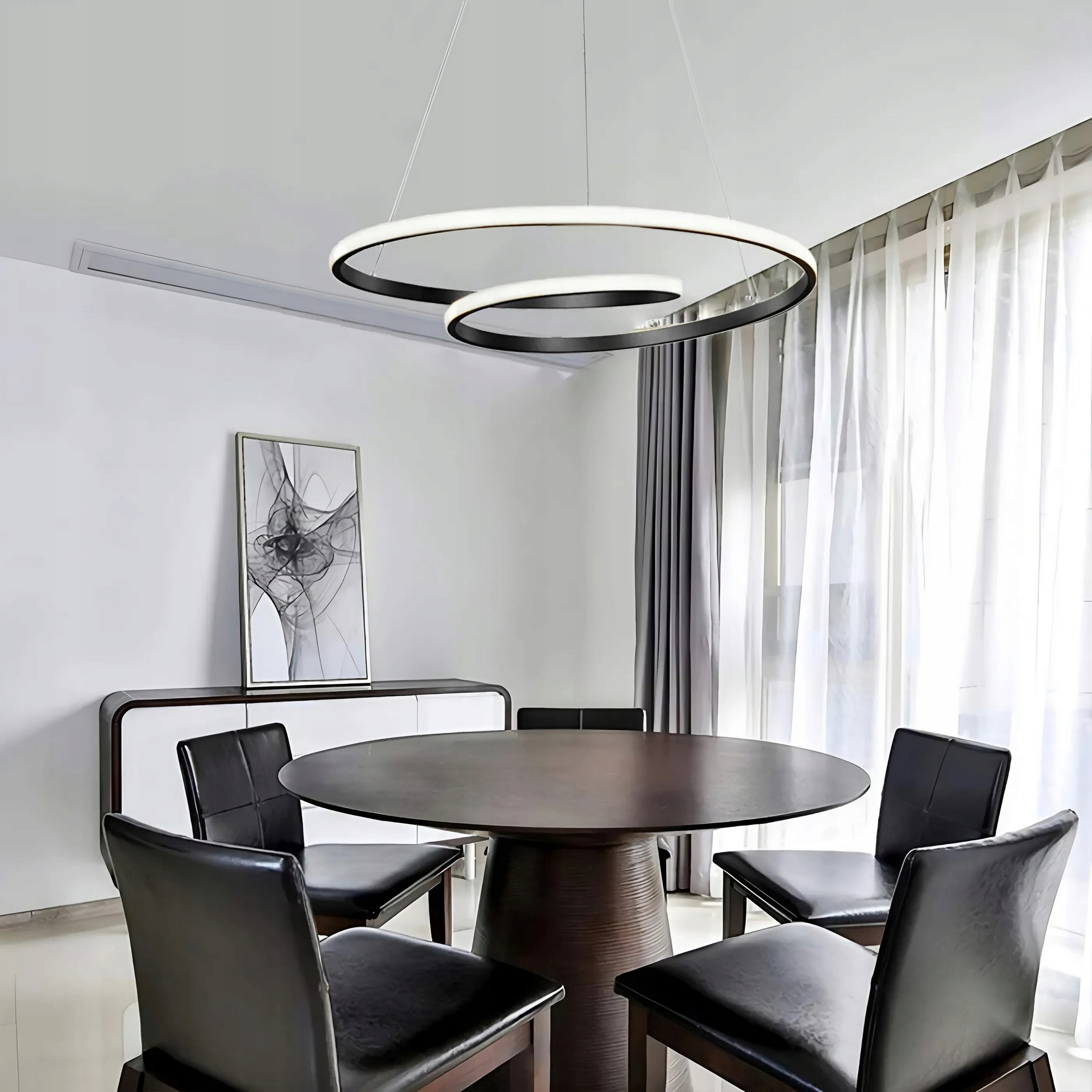 Підвісна лампа Чорна світлодіодна люстра Сучасна 2 кільце 60 см + пульт дистанційного керування 3 кольори