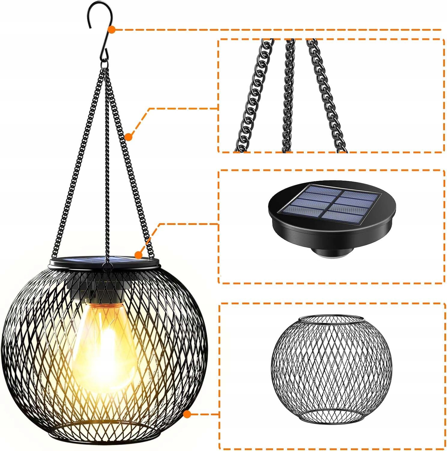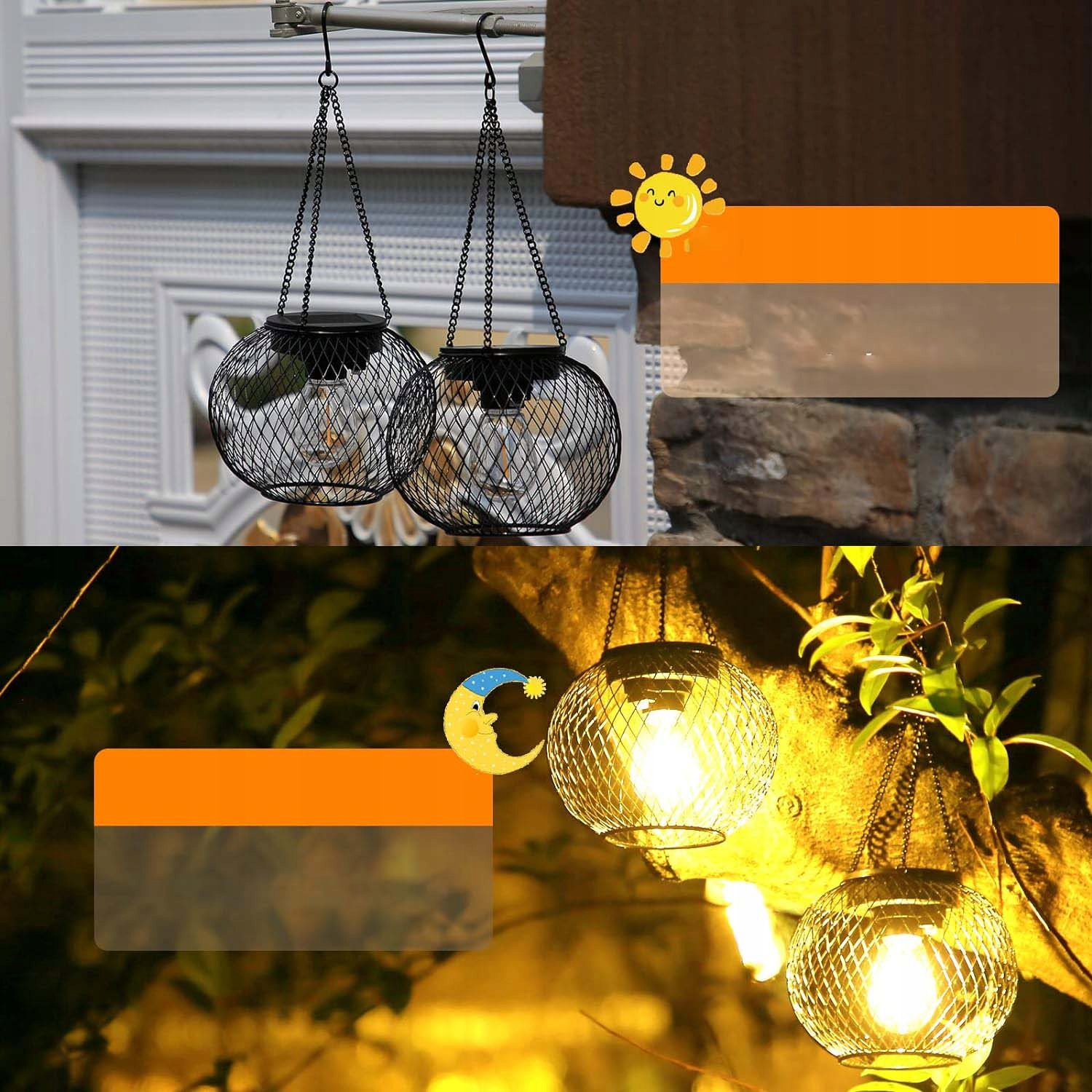 ⭐ Прекрасно розроблена прикраса: круглий сонячний маяк у ретро -стилі, що висить на вулиці, мінімалістичний декольте з сіткою, тепле біле світло, що проходить через металеву решітку, створює елегантний світлий малюнок, приносячи красу у ваш сад, створюючи романтичну та теплу домашню атмосфу.