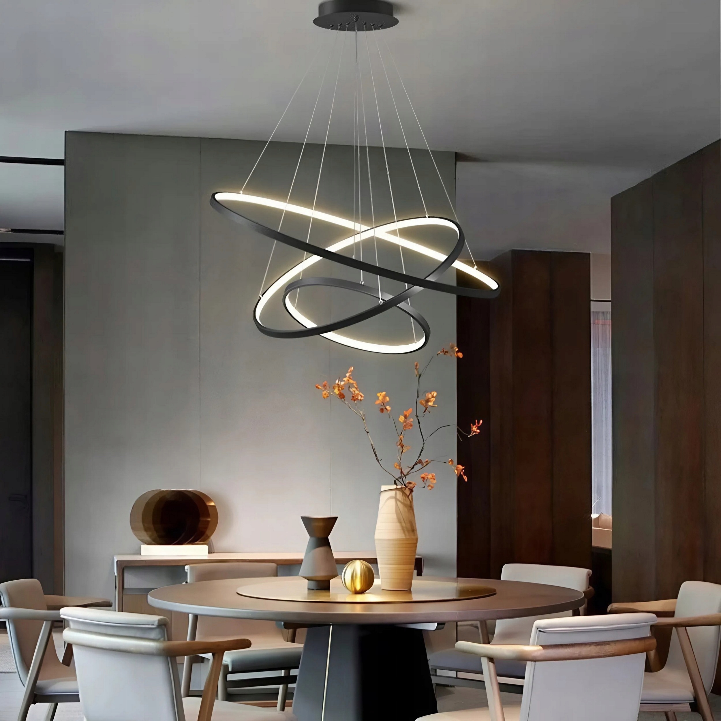 Підвісна лампа стельова люстра світлодіодна стеля 3колорі + пілотне чорне 3 кільце