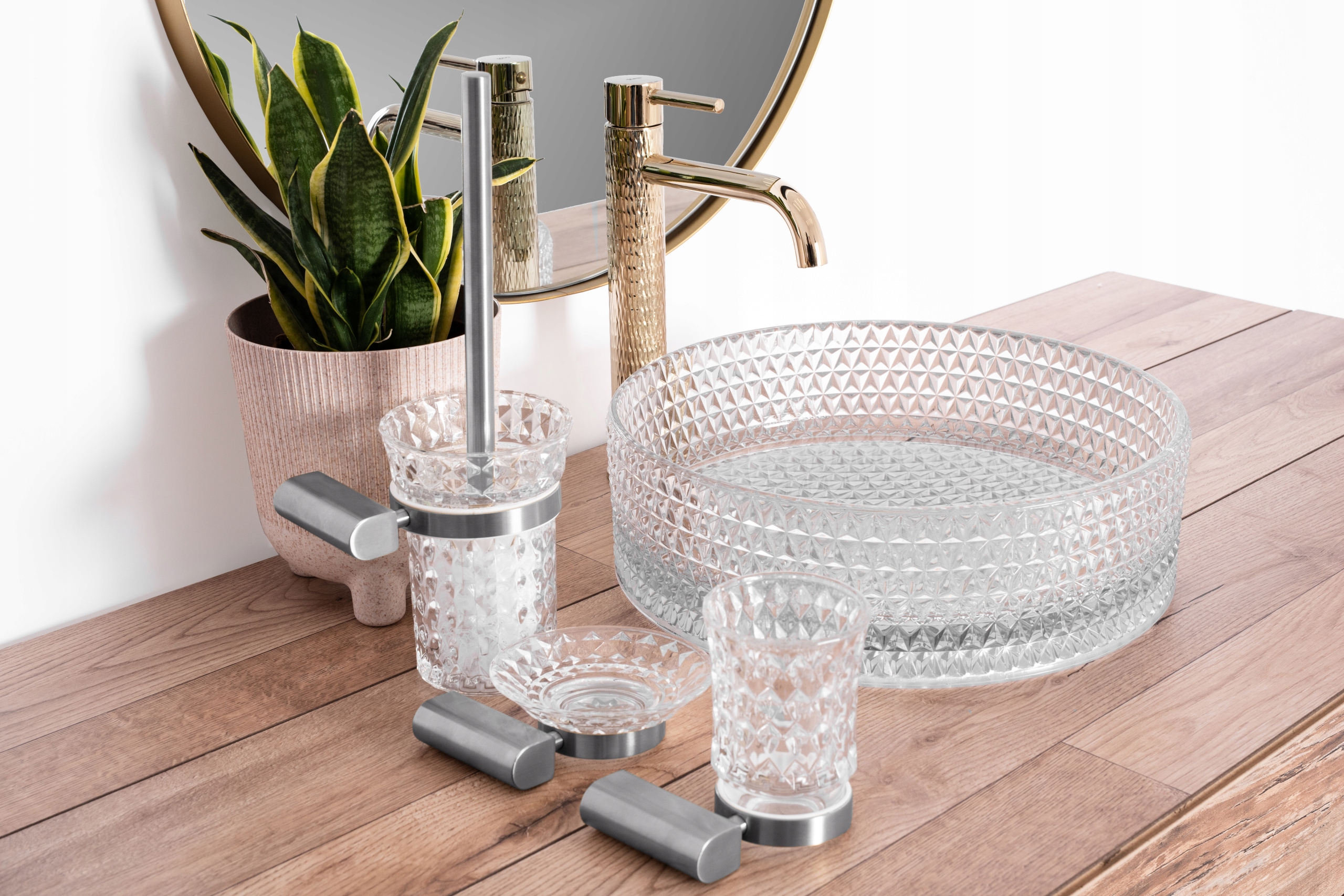 Представляємо вашій увазі красиву, надзвичайно функціональну та сучасну мильницю. Це продукт, який ідеально заповнить простір вашої ванної кімнати, зберігаючи бездоганний зовнішній вигляд і естетичність інтер'єру. Мильниця призначена для настінного кріплення за допомогою монтажного набору, що входить до виробу. Ручка виготовлена з металу, ємність для мила – зі скла з кришталевою обробкою, тому, окрім своєї функціональності, вона ще й дуже смачна та елегантна. Завдяки спеціальній фазі виробництва він міцний і його легко підтримувати в чистоті.