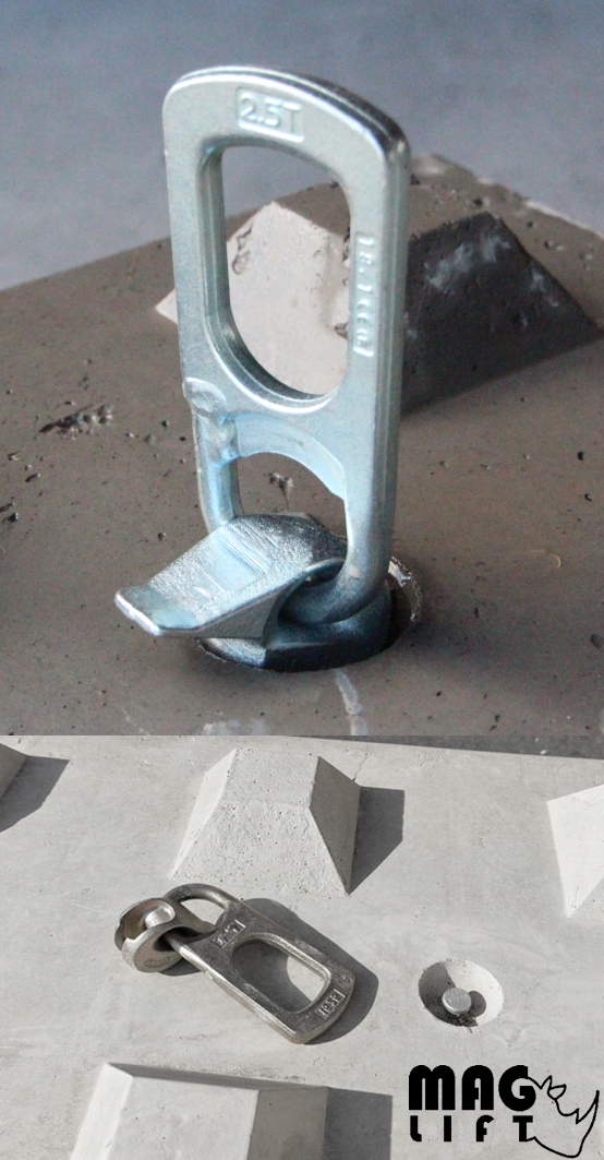 ЗАСТОСУВАННЯ: Для підйому збірних бетонних конструкцій, виробничої та будівельної промисловості та інших пов’язаних галузей. Вони допомагають у безпечному транспортуванні та розміщенні збірних конструкцій, в яких потрібен підйом збірних елементів, а також інших, таких як: бочки, бетонні блоки, фрагменти бордюрів, рулони, піддони з завантаженням, листи - як у горизонтальному, так і у вертикальному положеннях - сталеві профілі , труби, рейки та всілякі бруски та інші види будівельних матеріалів з повною безпекою. Вони придатні для використання в діапазоні температур від -20°C до 80°C без зниження межі робочого навантаження.