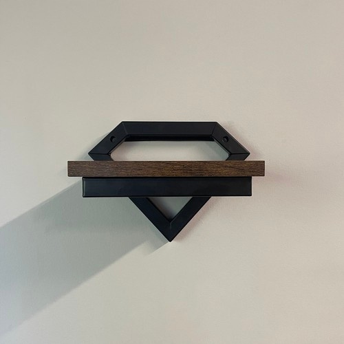 - УНІВЕРСАЛЬНІСТЬ ЗАСТОСУВАННЯ ТА ФУНКЦІОНАЛЬНІСТЬ - настінна полиця з чорним металевим профілем у формі ромба ідеально підходить для різних приміщень. Йогоунікальний дизайн робить його не тільки практичним, але й стильним декоративним елементом, який привертає увагу та підкреслює характер інтер'єру.