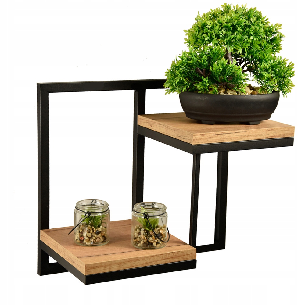 Великою перевагою цієї підвісної полиці є її універсальність, оскільки її можна використовувати як підставку для квітів, але також ідеально функціонує як підвісна полиця. Конструкція виготовлена зі сталевого профілю, а стільниці виготовлені з ламінованої дошки крафтового золотого дуба. Все це зварене, що гарантує довговічність, і все це електростатично пофарбоване в чорний матовий структурний колір. Підставка для квітів має двівеликі вершинирозмірами20/20 см. Разом із полицею клієнт отримує набір дюбелів і дюбелів для закриття отворів. Підставка для квітів готова до самостійного монтажу на стіні.
